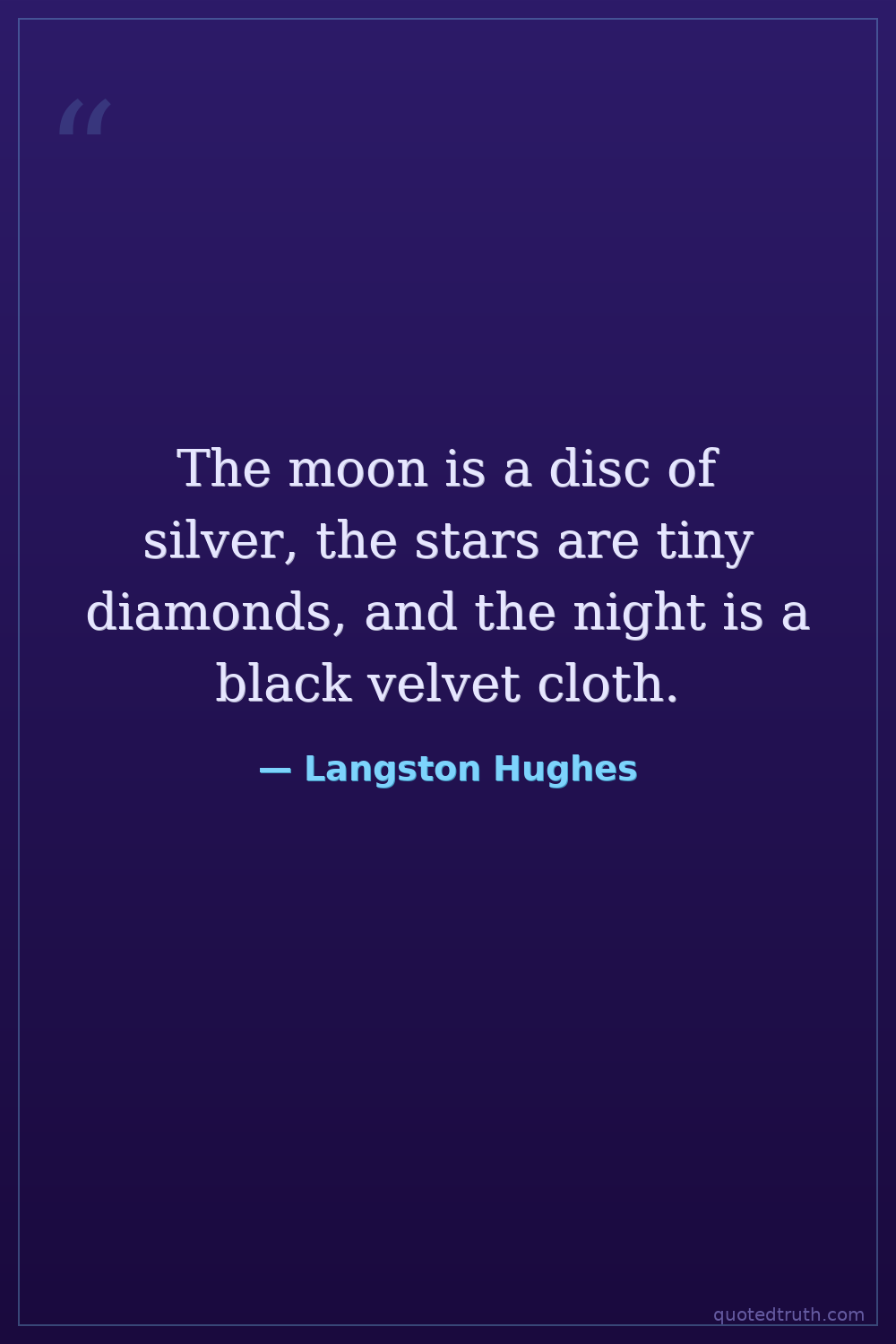 The moon is a disc of silver, the stars are tiny diamonds, and the night is a black velvet cloth.