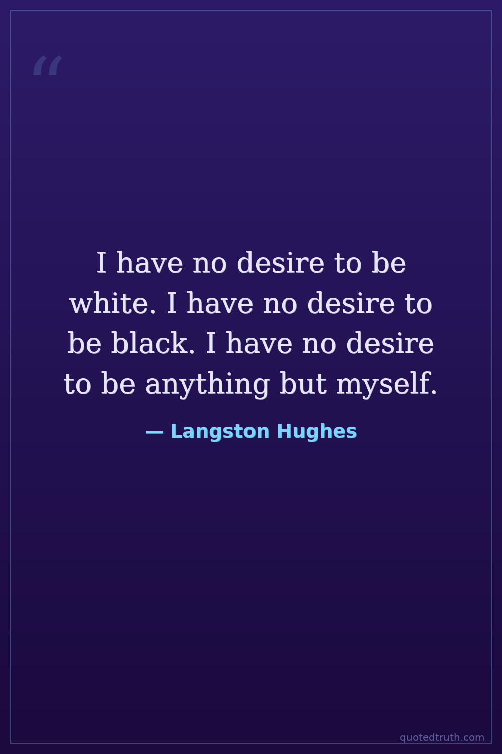 I have no desire to be white. I have no desire to be black. I have no desire to be anything but myself.