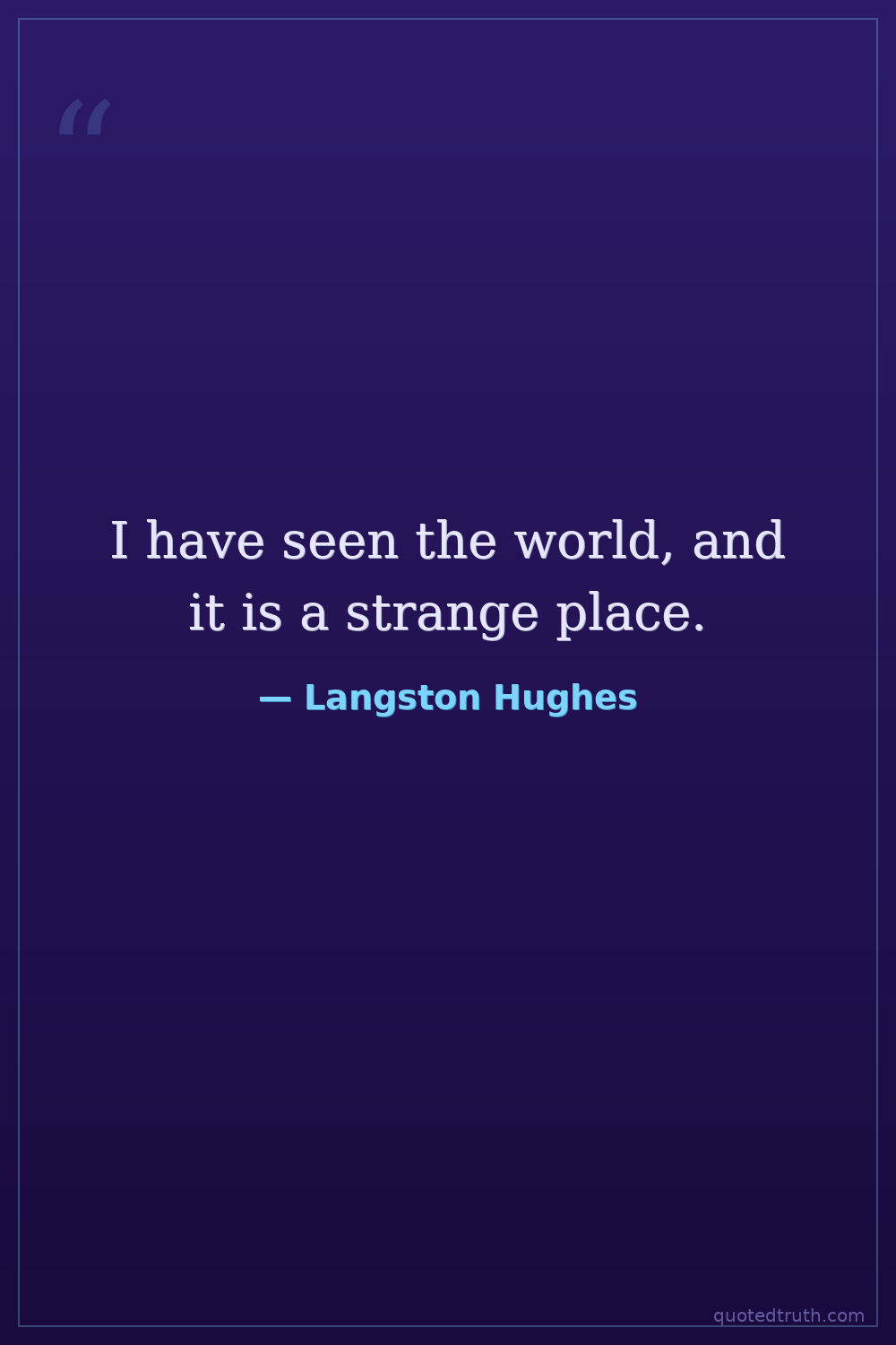 Strange & Unusual"I, too, sing America. I am the darker brother. They send me to eat in the kitchen When company comes, But I laugh, And eat well, And grow strong. Tomorrow, I'll be at the table When company comes. Nob…"