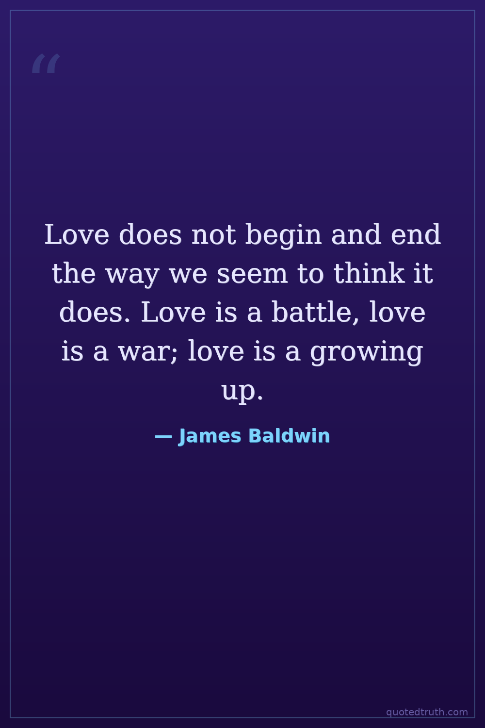 Love does not begin and end the way we seem to think it does. Love is a battle, love is a war; love is a growing up.