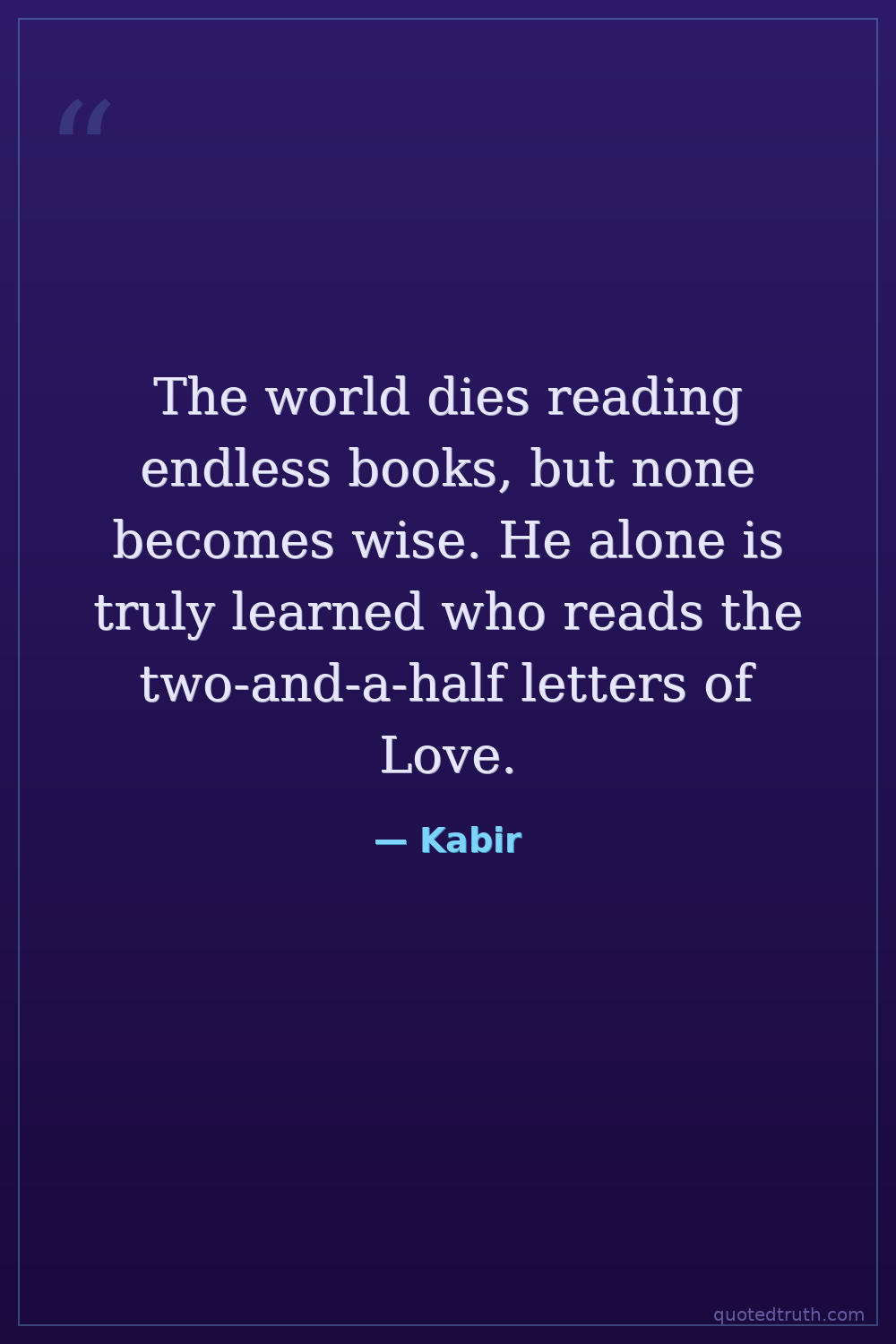 The world dies reading endless books, but none becomes wise. He alone is truly learned who reads the two-and-a-half letters of Love.