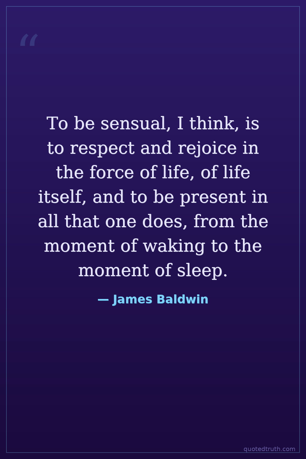 To be sensual, I think, is to respect and rejoice in the force of life, of life itself, and to be present in all that one does, from the moment of waking to the moment of sleep.