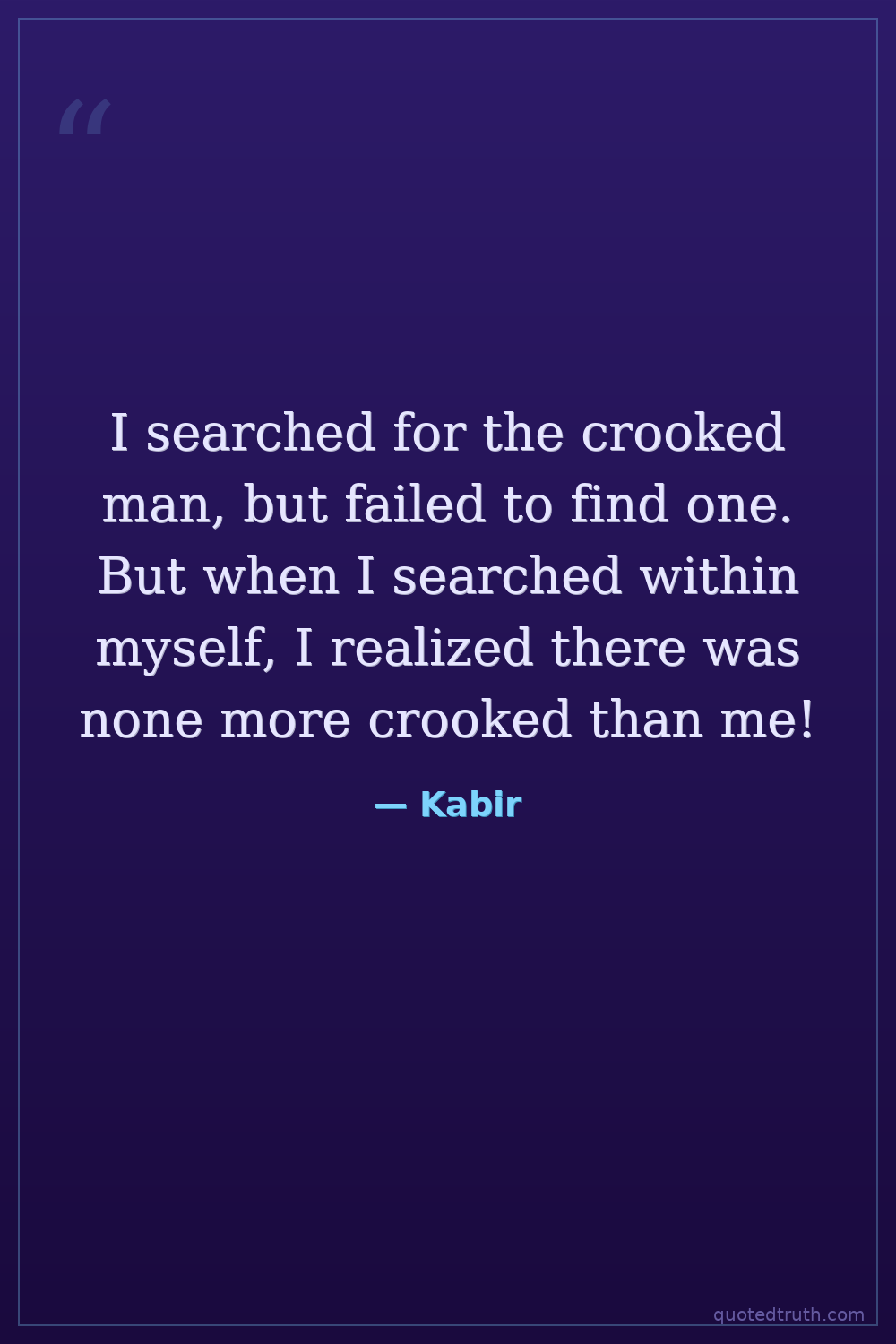 I searched for the crooked man, but failed to find one. But when I searched within myself, I realized there was none more crooked than me!