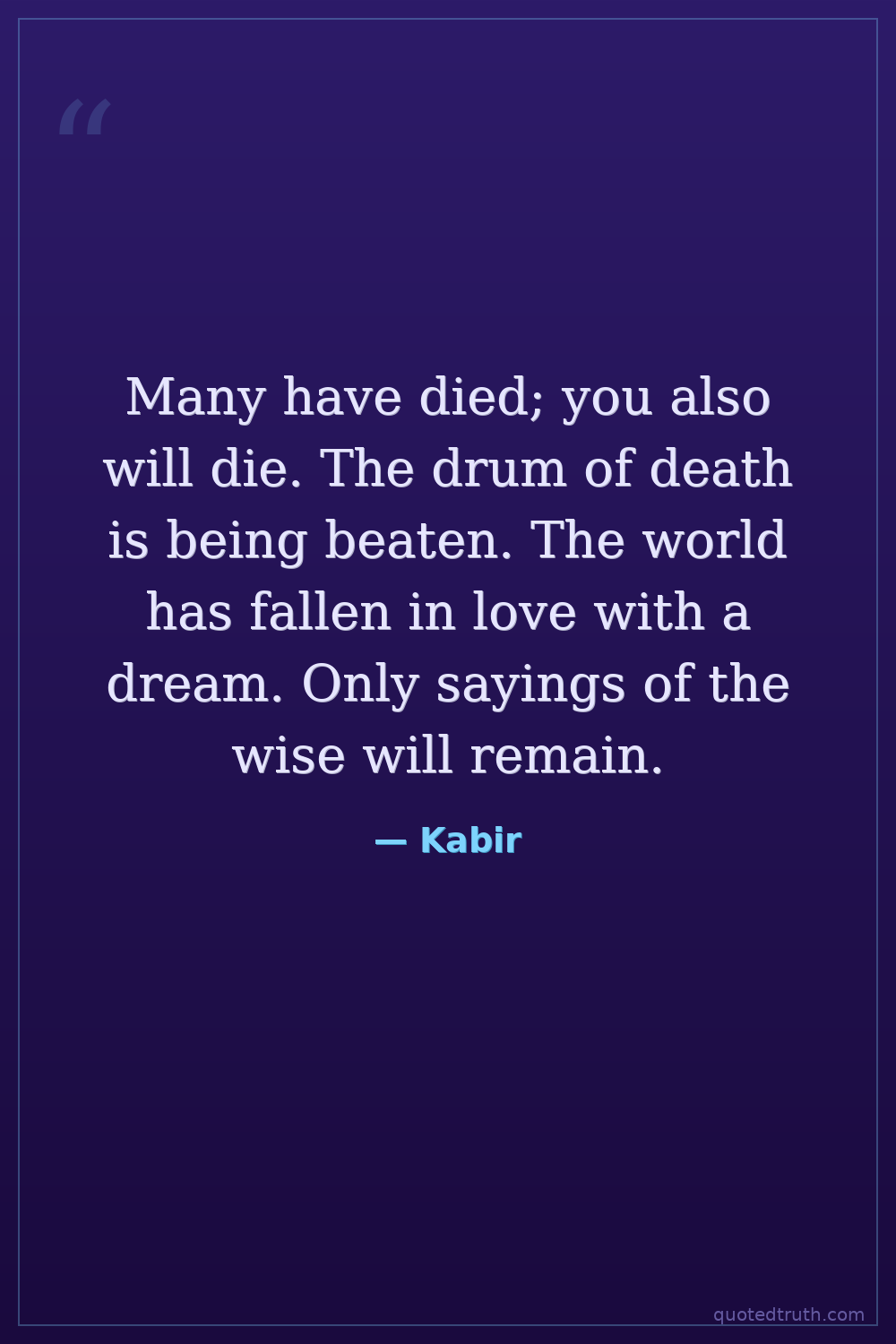 Many have died; you also will die. The drum of death is being beaten. The world has fallen in love with a dream. Only sayings of the wise will remain.