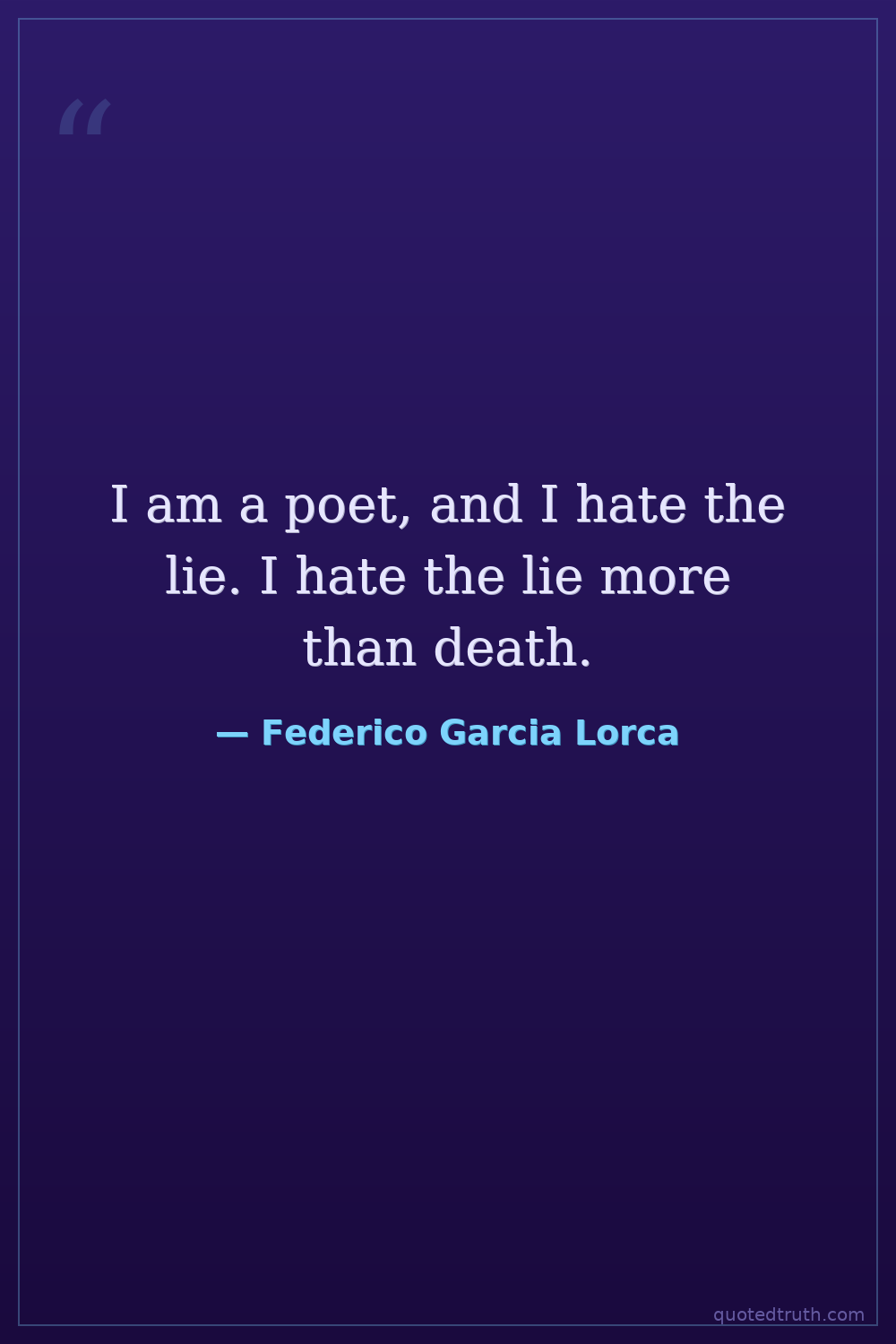 I am a poet, and I hate the lie. I hate the lie more than death.