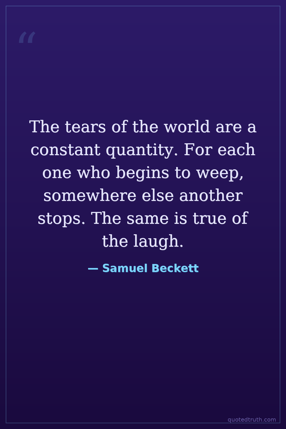 The tears of the world are a constant quantity. For each one who begins to weep, somewhere else another stops. The same is true of the laugh.