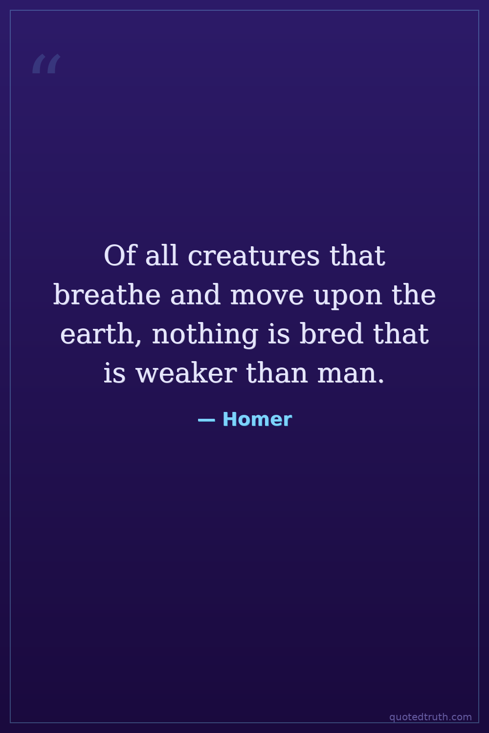 Of all creatures that breathe and move upon the earth, nothing is bred that is weaker than man.