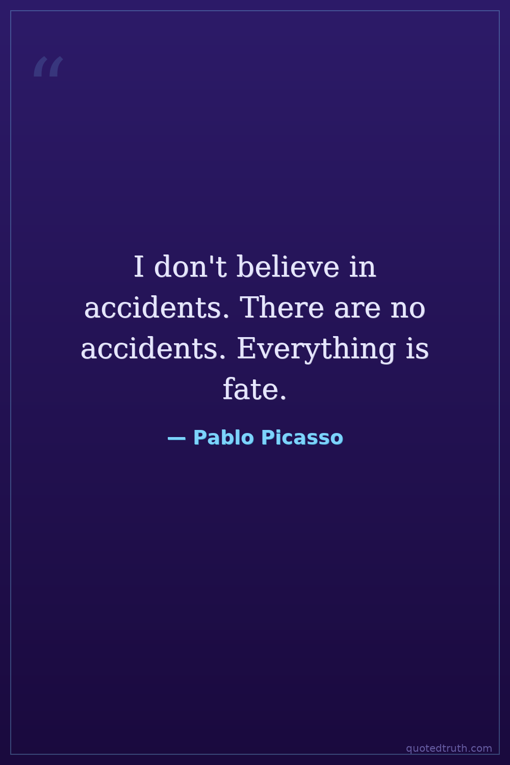I don't believe in accidents. There are no accidents. Everything is fate.