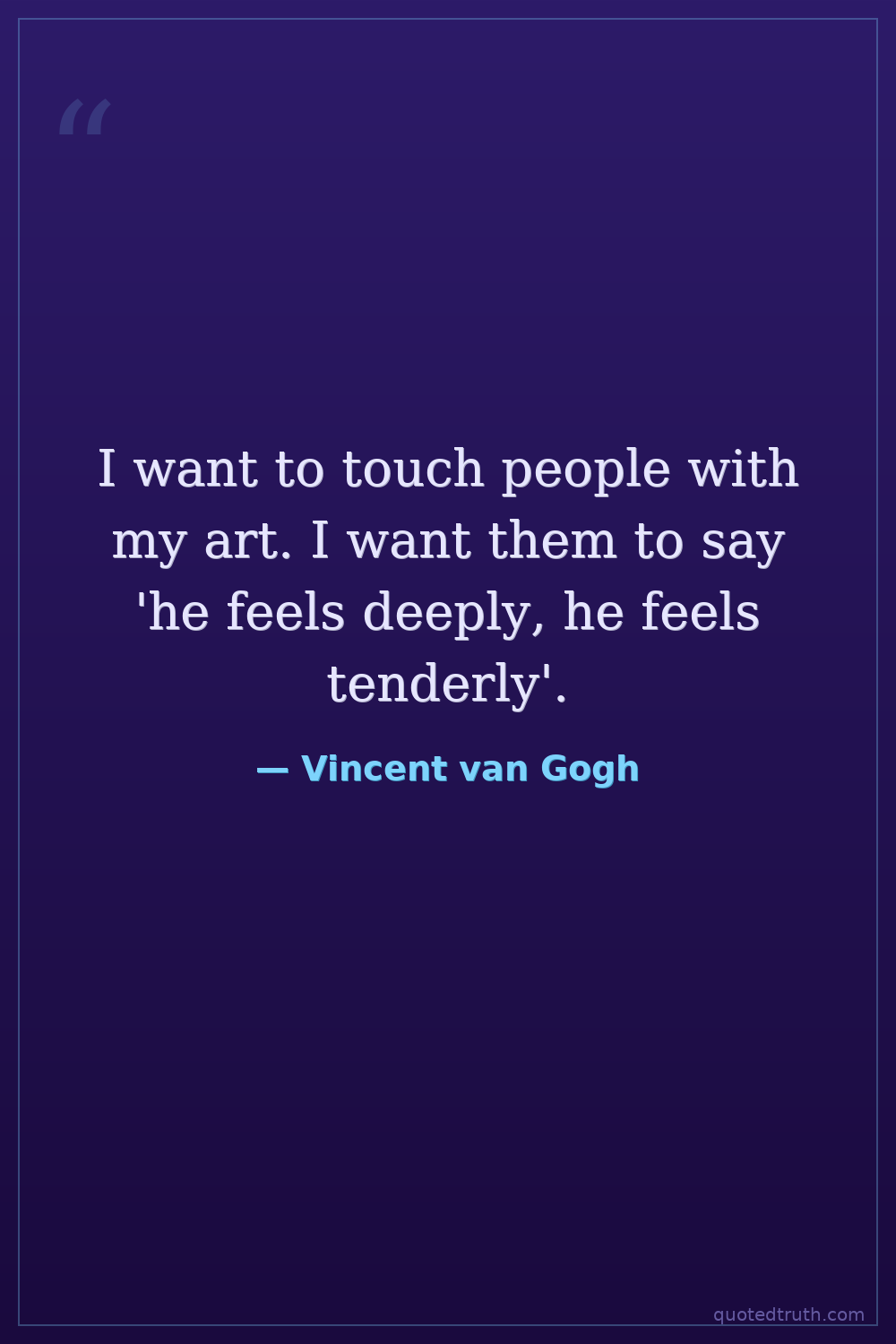 I want to touch people with my art. I want them to say 'he feels deeply, he feels tenderly'.