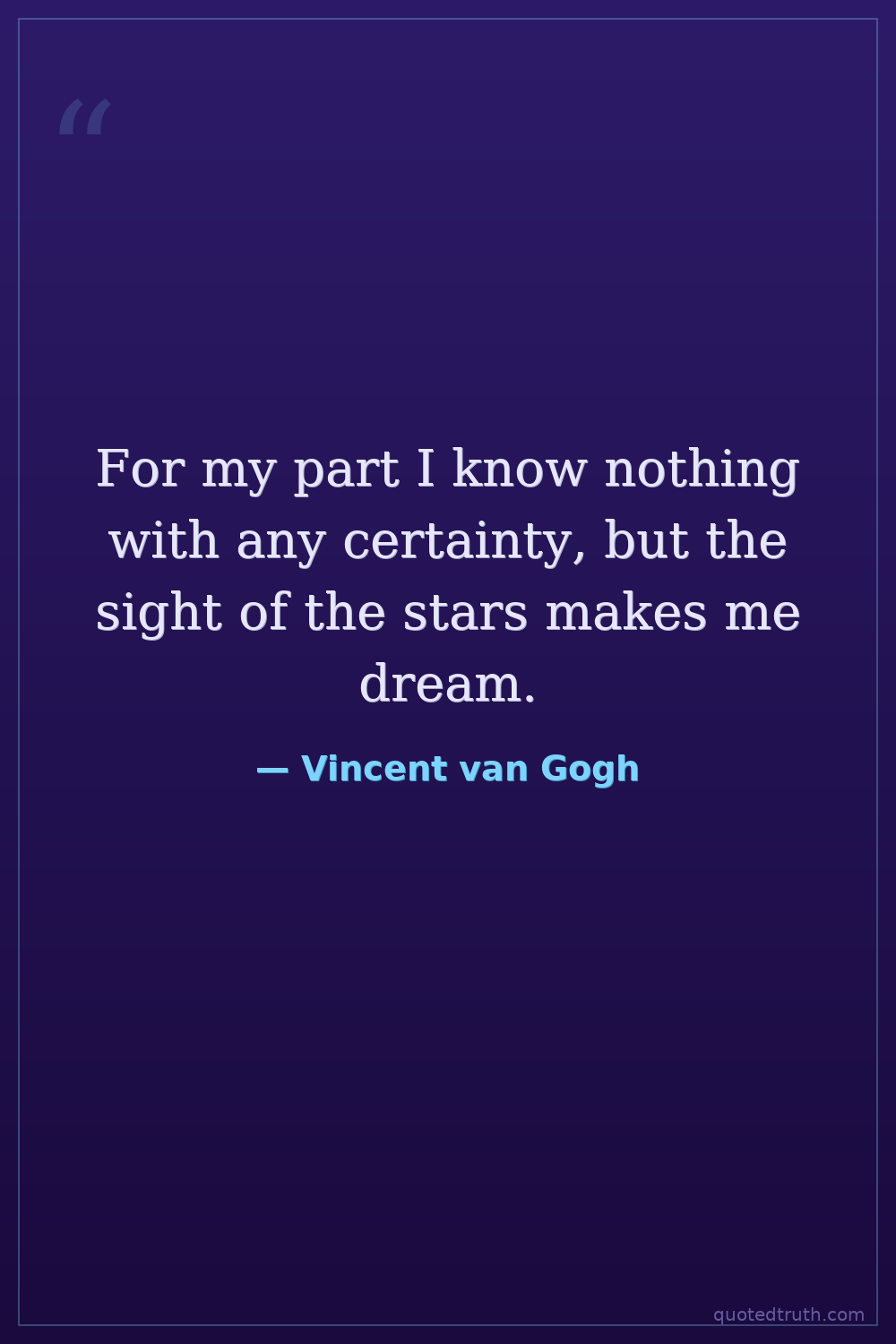For my part I know nothing with any certainty, but the sight of the stars makes me dream.