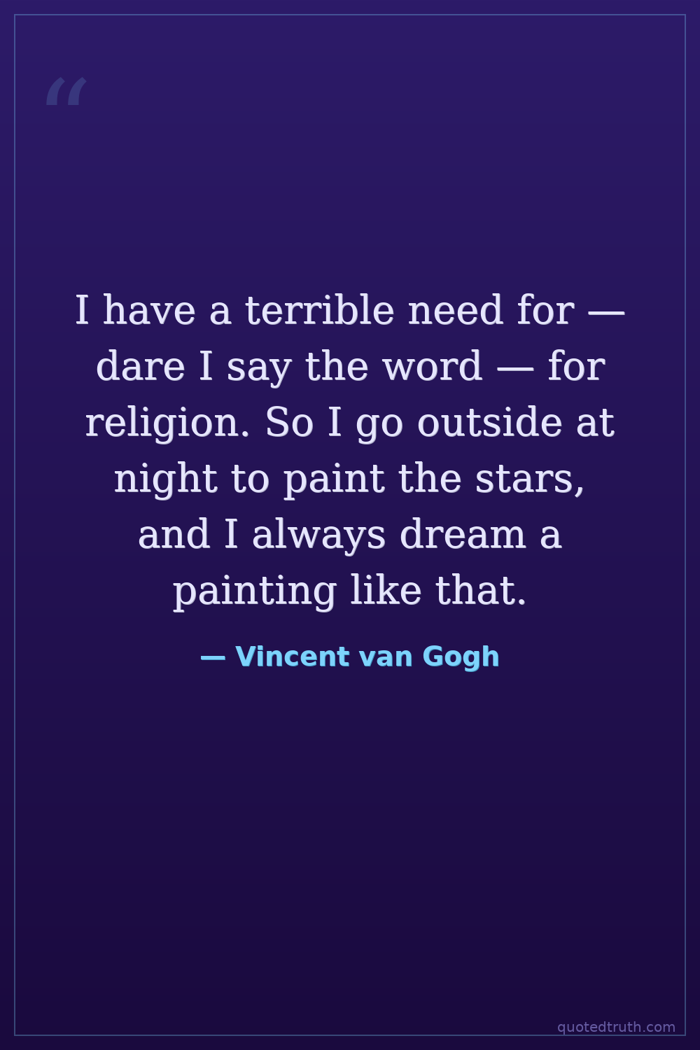 I have a terrible need for — dare I say the word — for religion. So I go outside at night to paint the stars, and I always dream a painting like that.