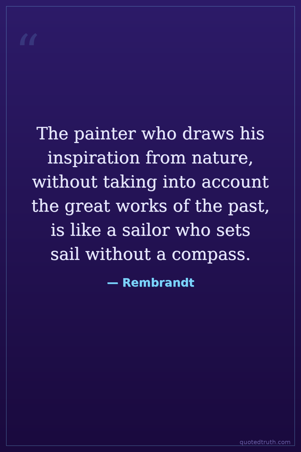 The painter who draws his inspiration from nature, without taking into account the great works of the past, is like a sailor who sets sail without a compass.