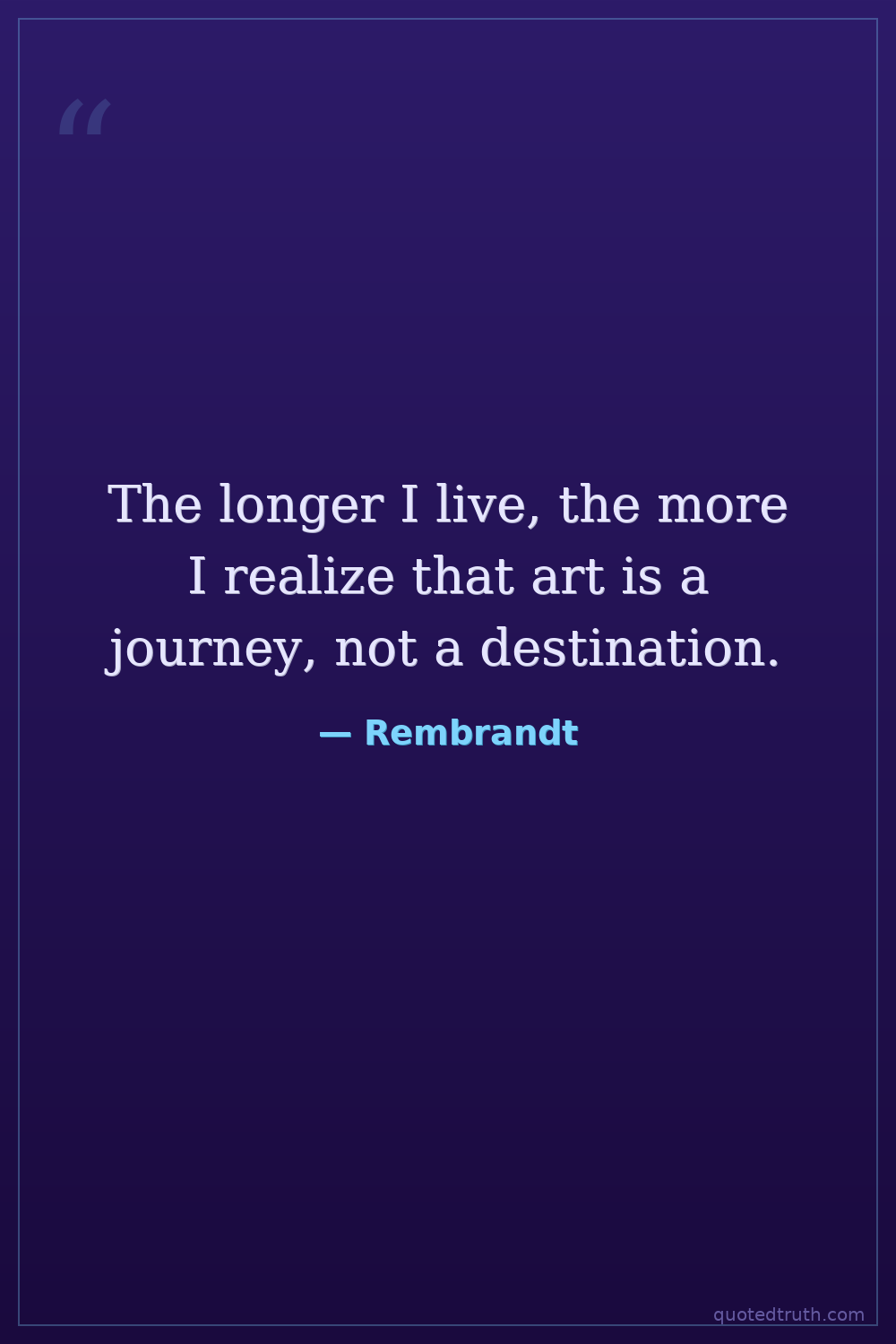 The longer I live, the more I realize that art is a journey, not a destination.