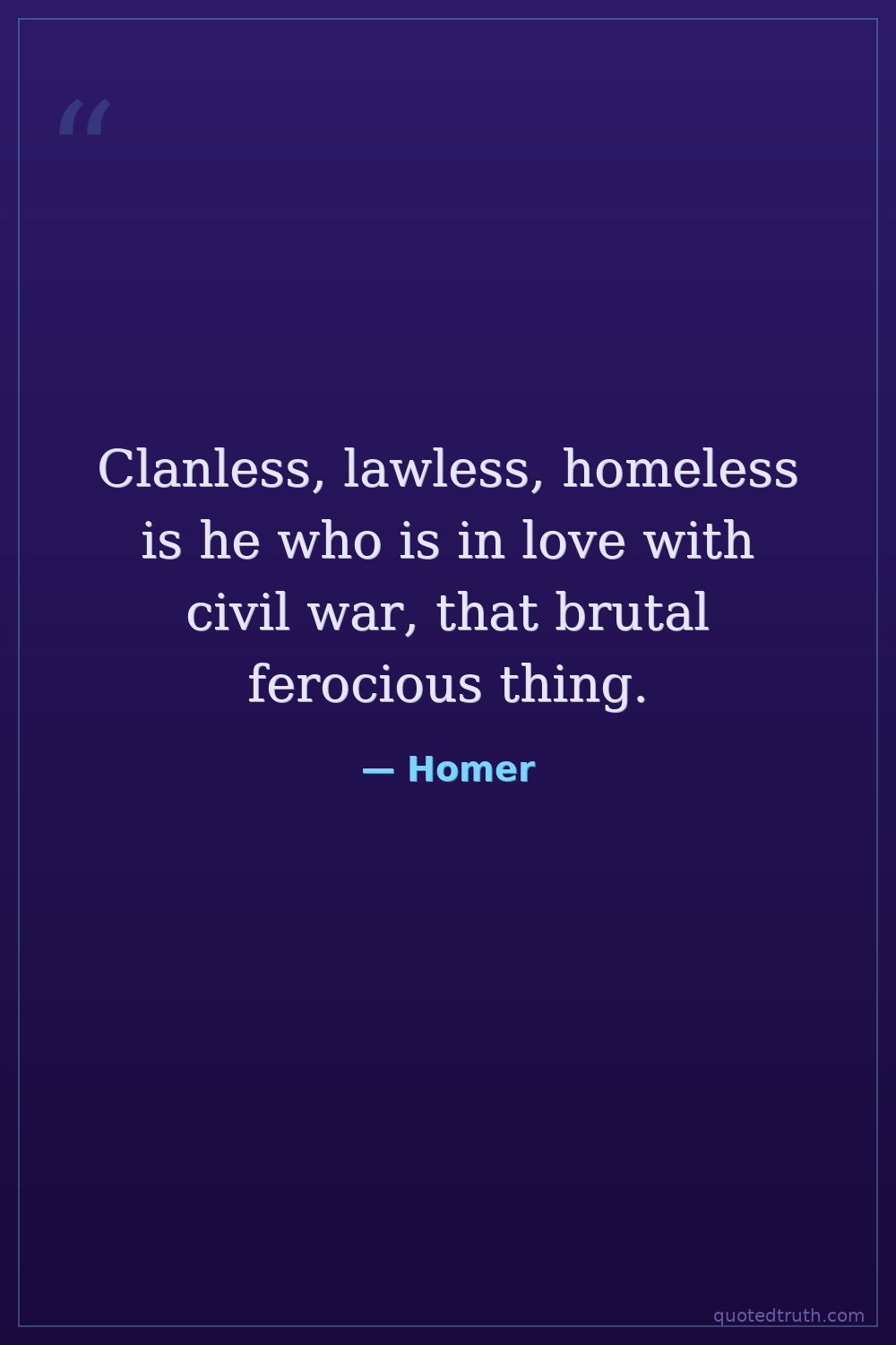 Clanless, lawless, homeless is he who is in love with civil war, that brutal ferocious thing.