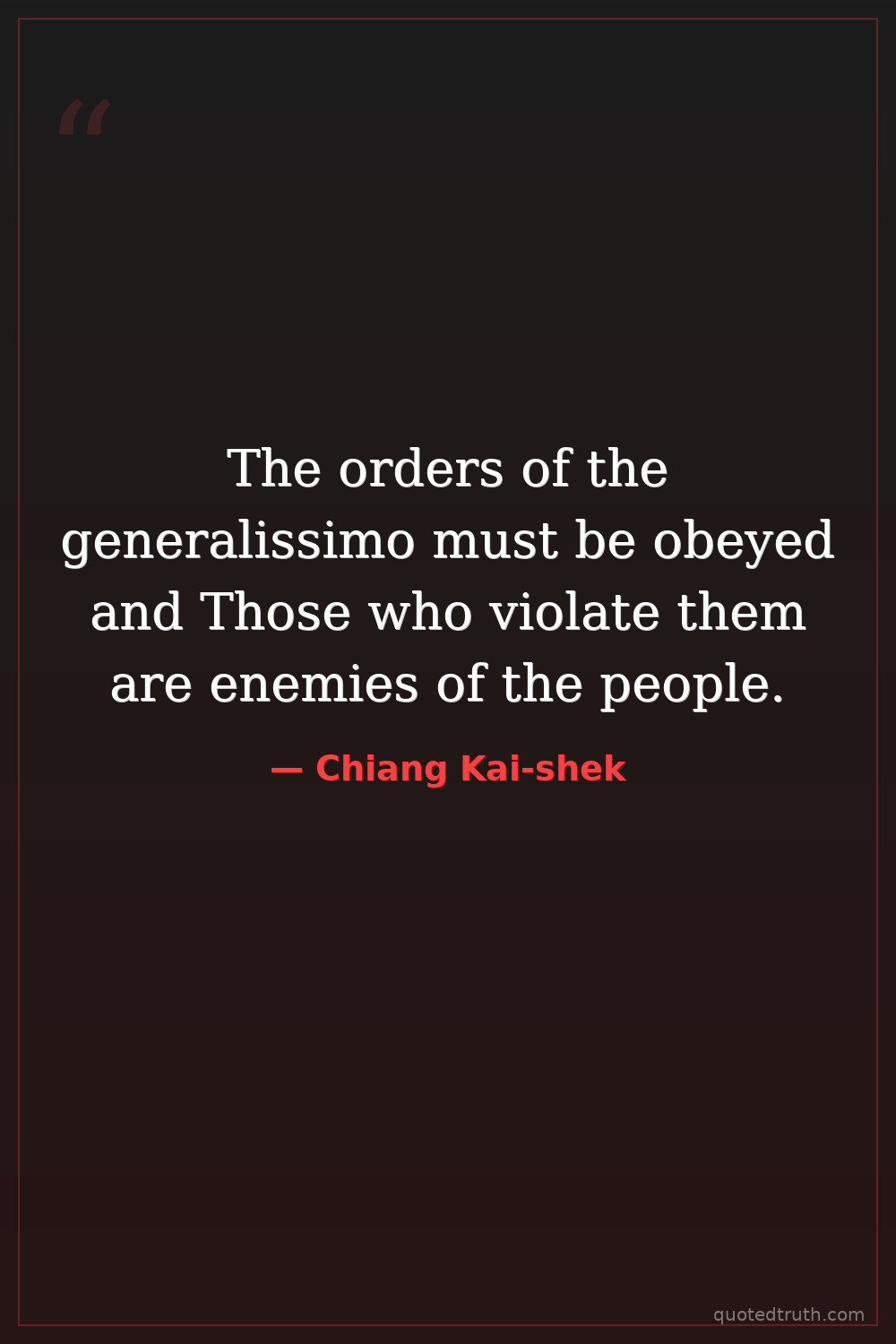 The orders of the generalissimo must be obeyed and Those who violate them are enemies of the people.