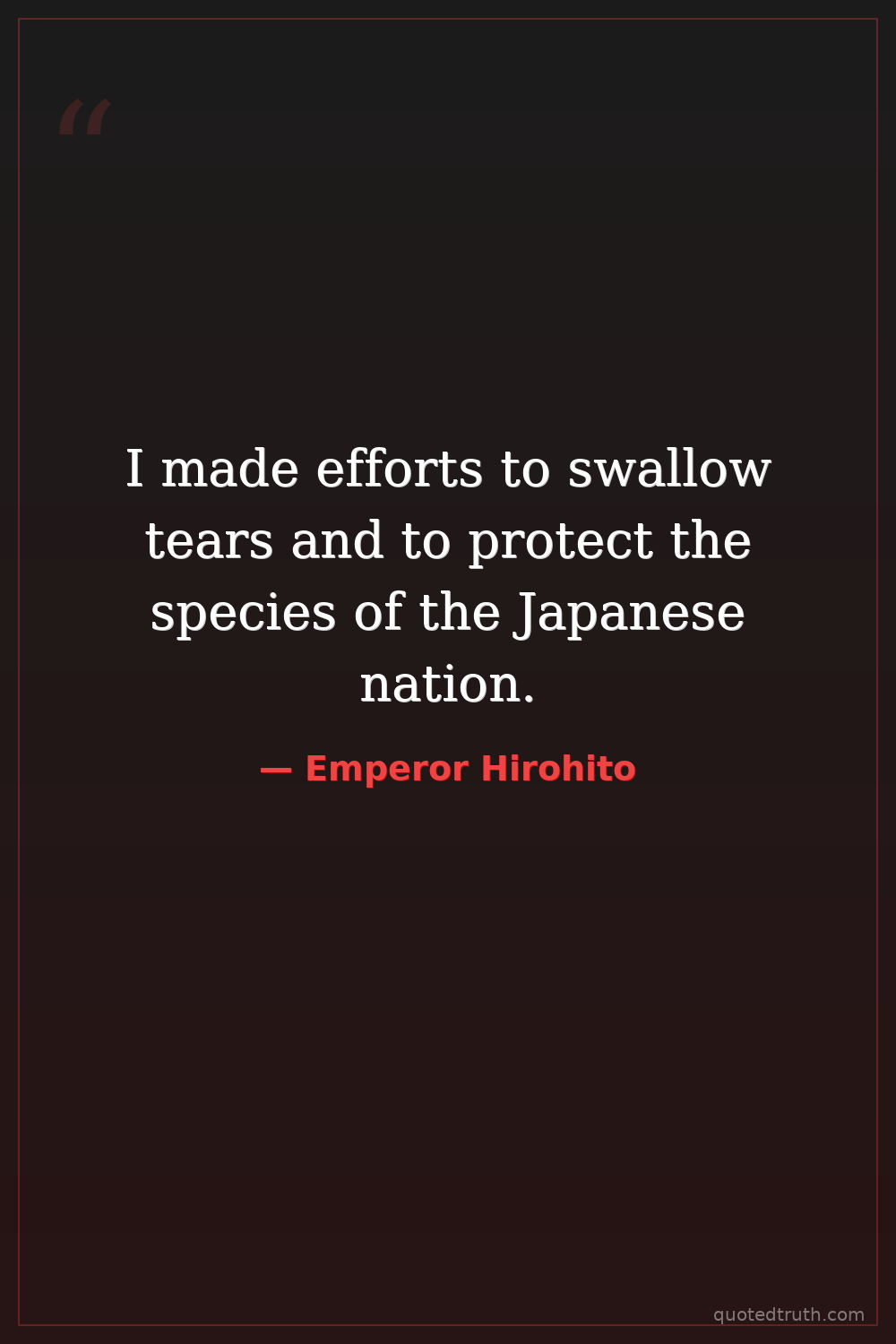 I made efforts to swallow tears and to protect the species of the Japanese nation.