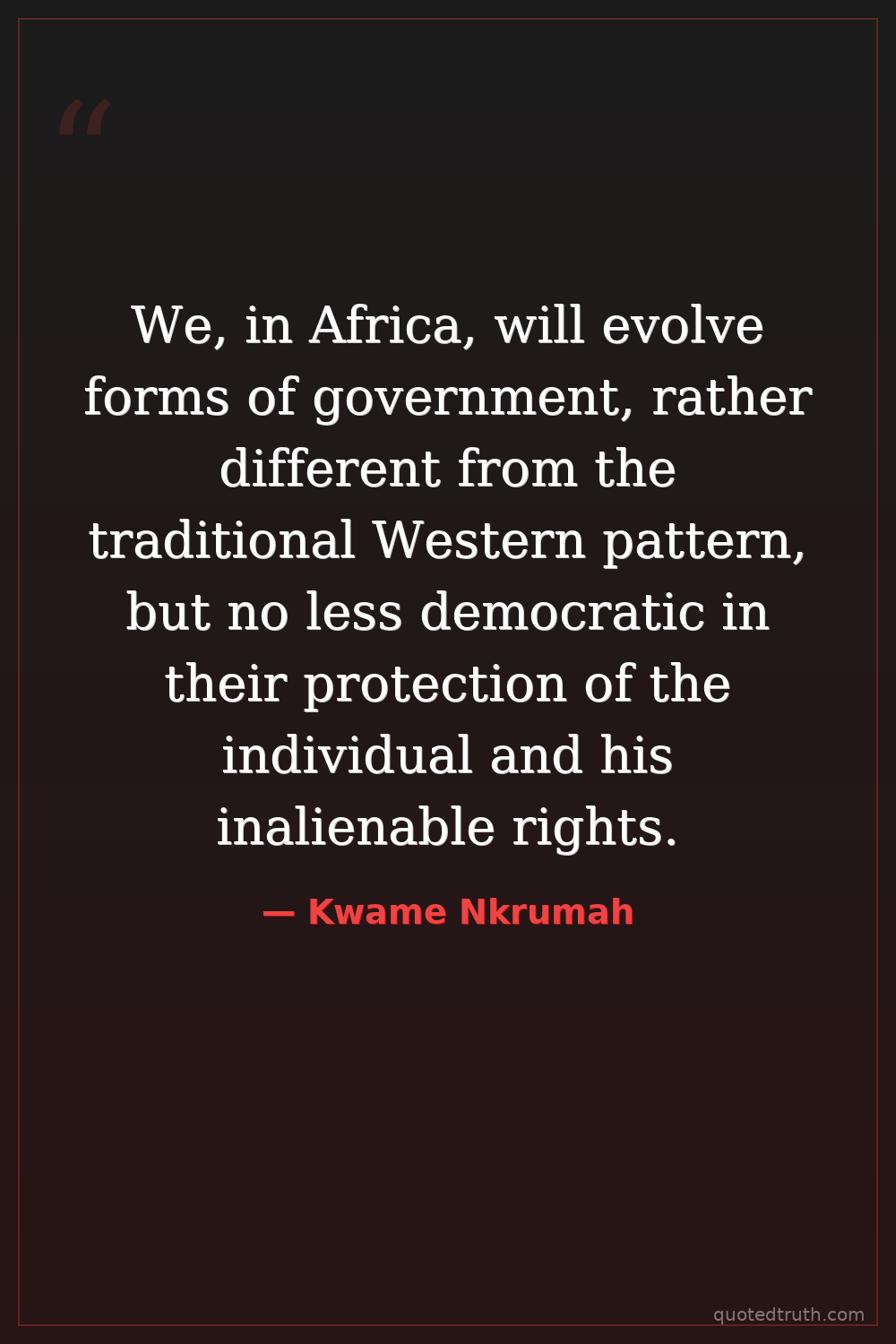 We, in Africa, will evolve forms of government, rather different from the traditional Western pattern, but no less democratic in their protection of the individual and his inalienable rights.