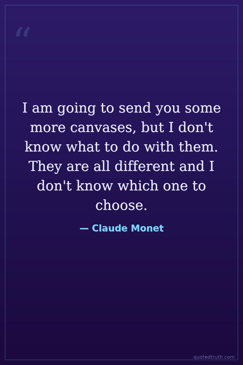 I am going to send you some more canvases, but I don't know what to do with them. They are all different and I don't know which one to choose.