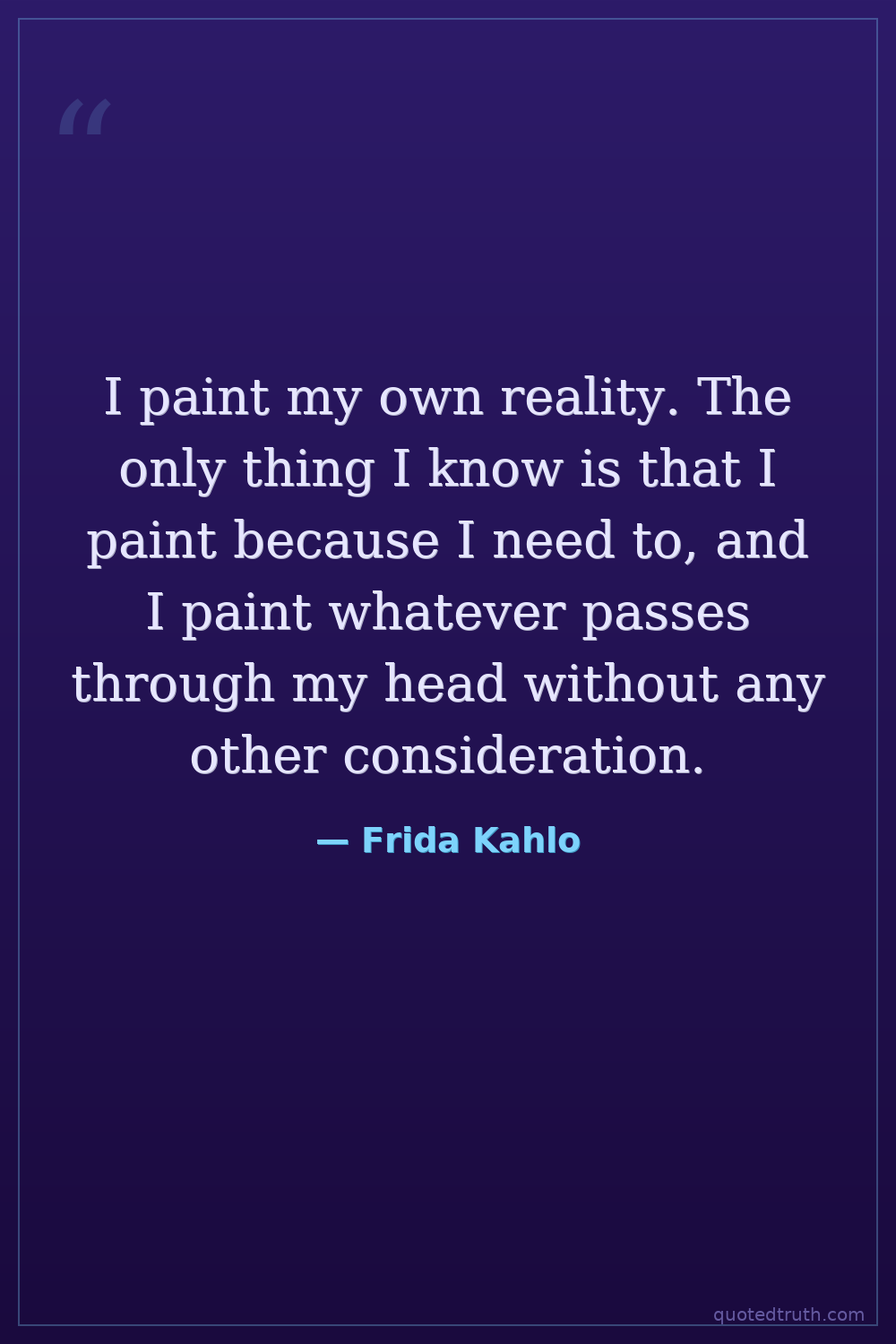 I paint my own reality. The only thing I know is that I paint because I need to, and I paint whatever passes through my head without any other consideration.