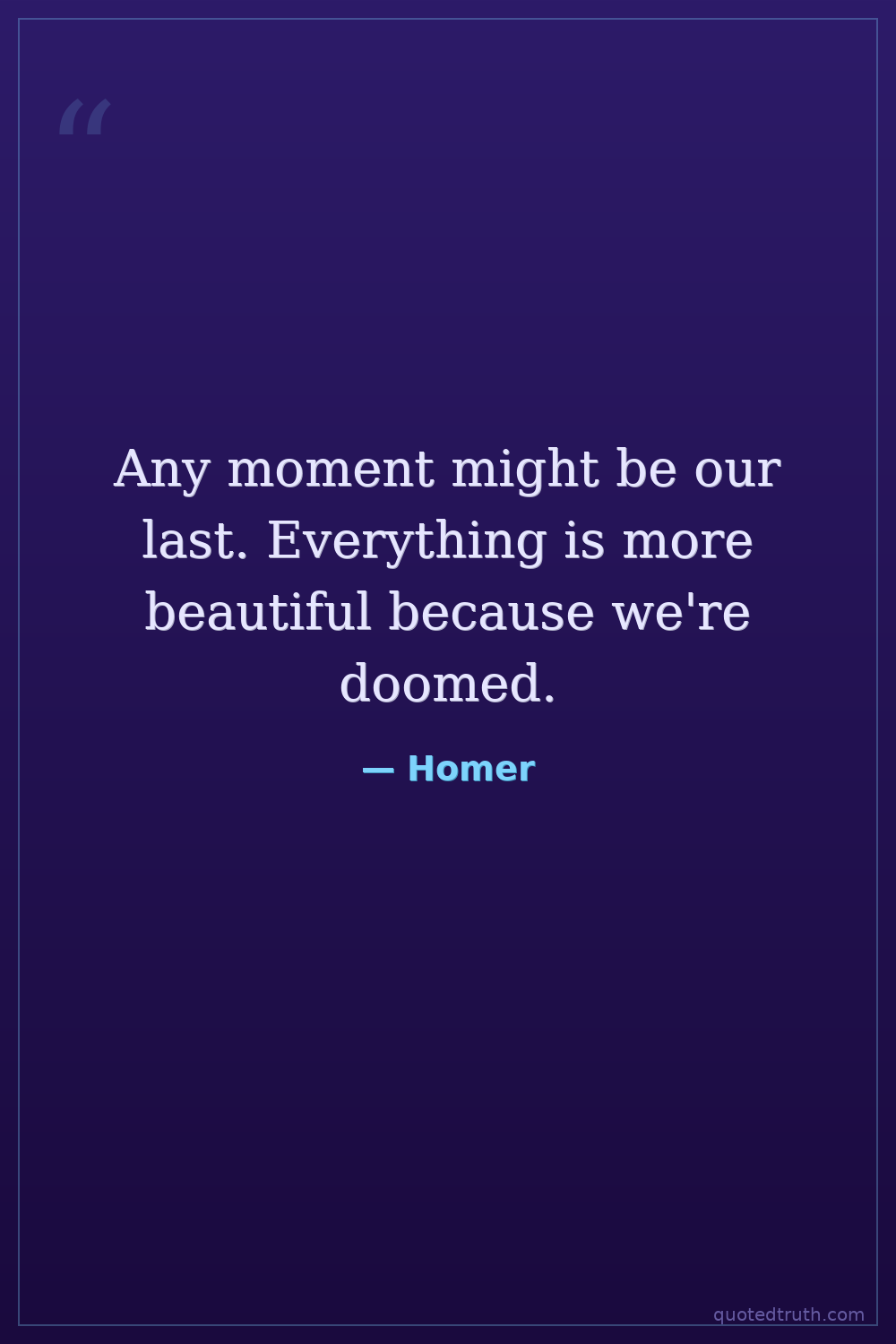 Any moment might be our last. Everything is more beautiful because we're doomed.