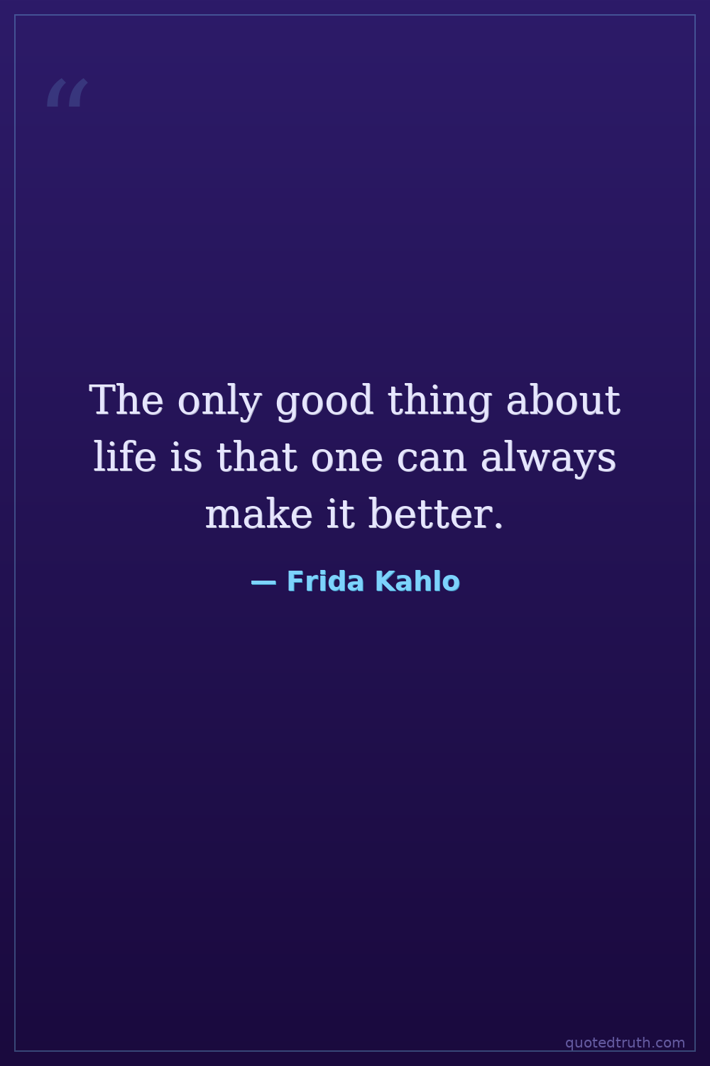 The only good thing about life is that one can always make it better.