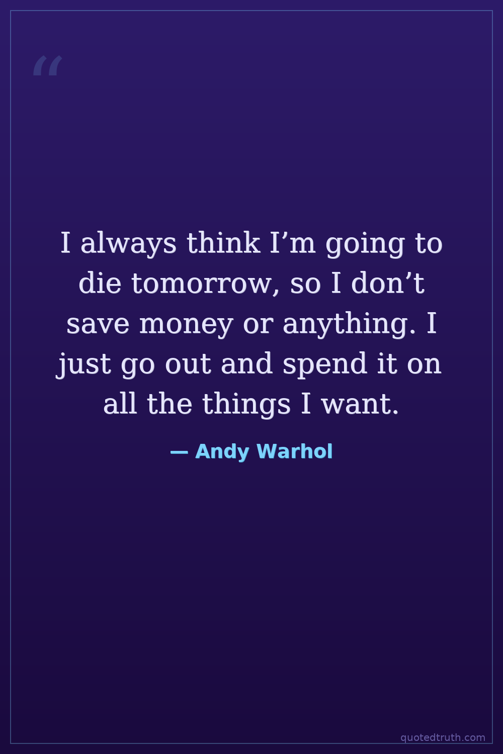I always think I’m going to die tomorrow, so I don’t save money or anything. I just go out and spend it on all the things I want.