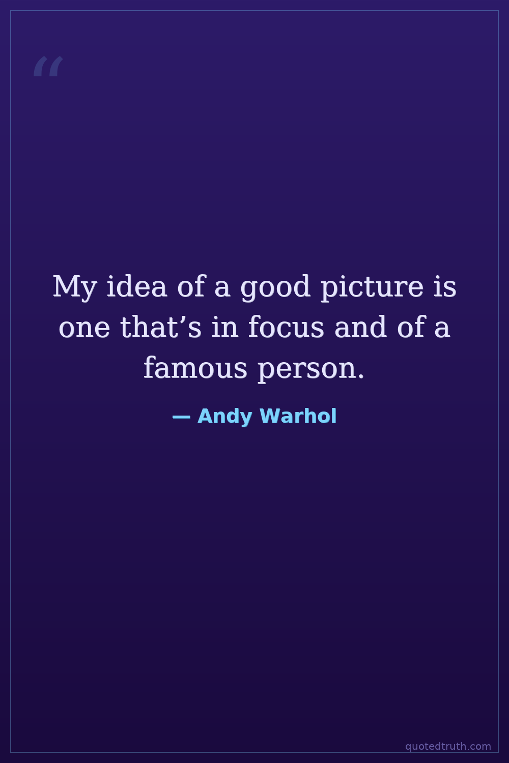 My idea of a good picture is one that’s in focus and of a famous person.