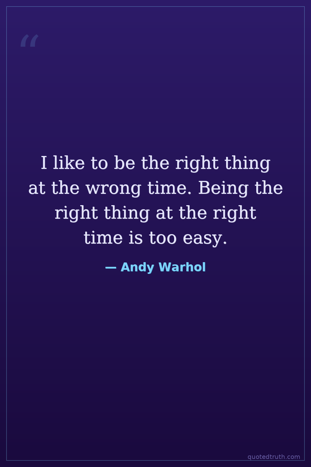 I like to be the right thing at the wrong time. Being the right thing at the right time is too easy.