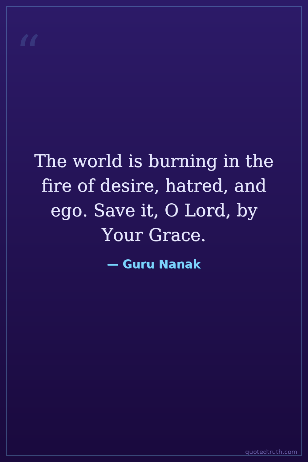 The world is burning in the fire of desire, hatred, and ego. Save it, O Lord, by Your Grace.