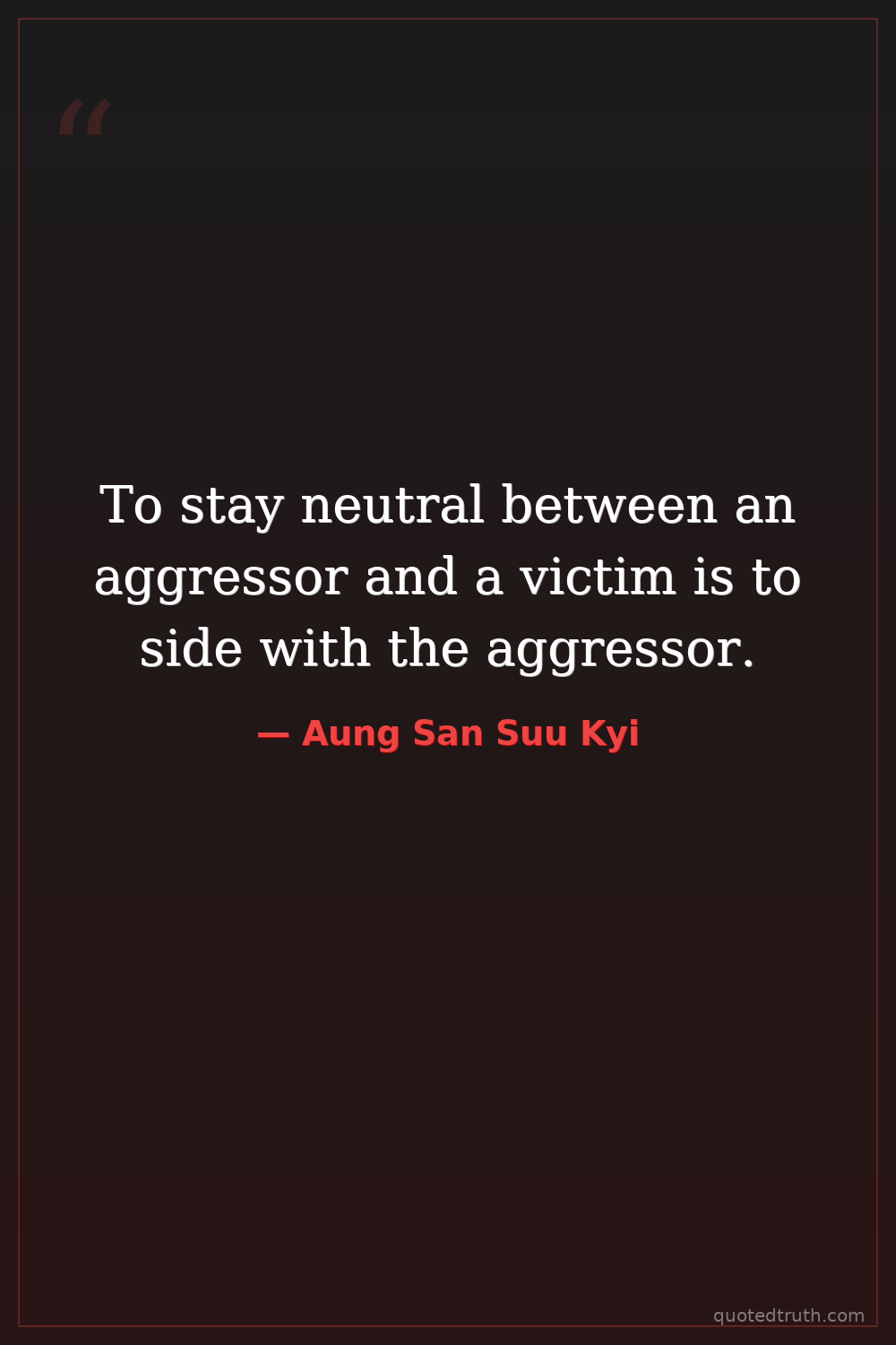 To stay neutral between an aggressor and a victim is to side with the aggressor.