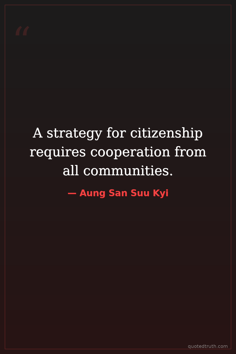 "The quest for democracy in Burma is the struggle of a people to live whole, meaningful lives as free and equal members of the world community."
