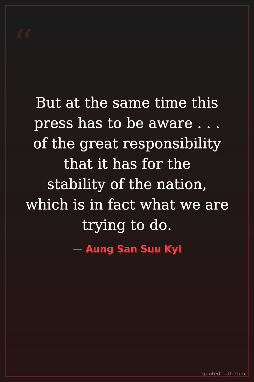 But at the same time this press has to be aware . . . of the great responsibility that it has for the stability of the nation, which is in fact what we are trying to do.