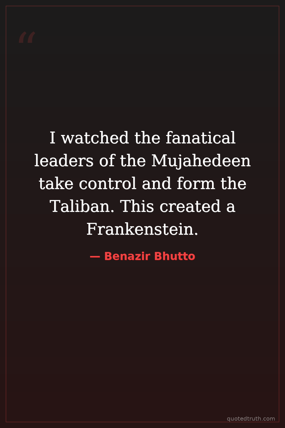 I watched the fanatical leaders of the Mujahedeen take control and form the Taliban. This created a Frankenstein.
