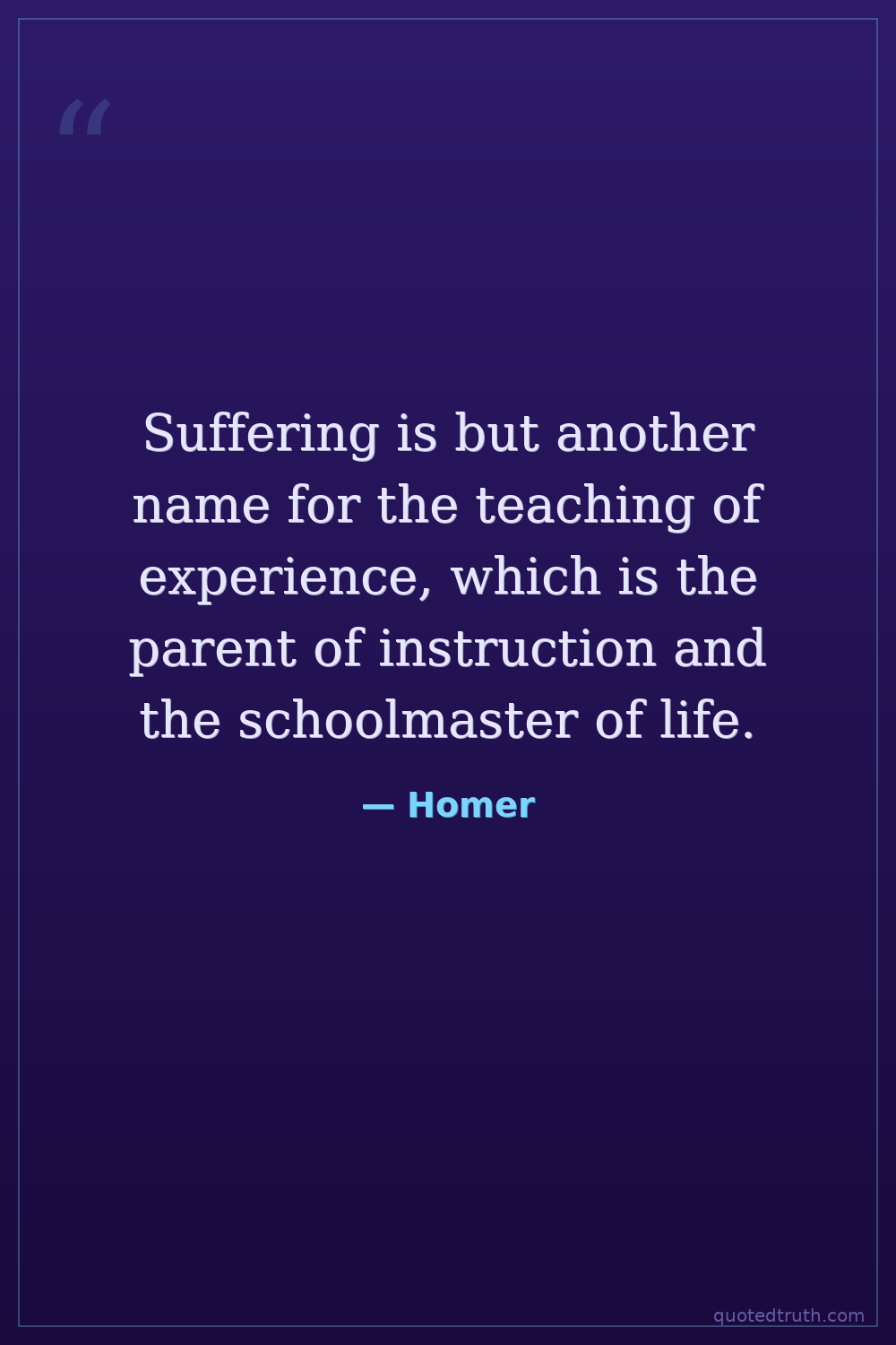 Suffering is but another name for the teaching of experience, which is the parent of instruction and the schoolmaster of life.