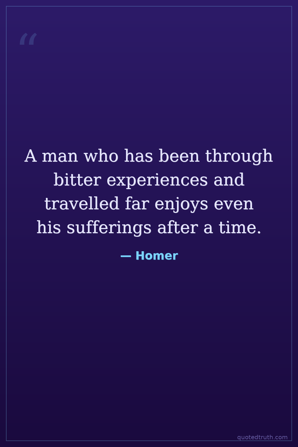 A man who has been through bitter experiences and travelled far enjoys even his sufferings after a time.