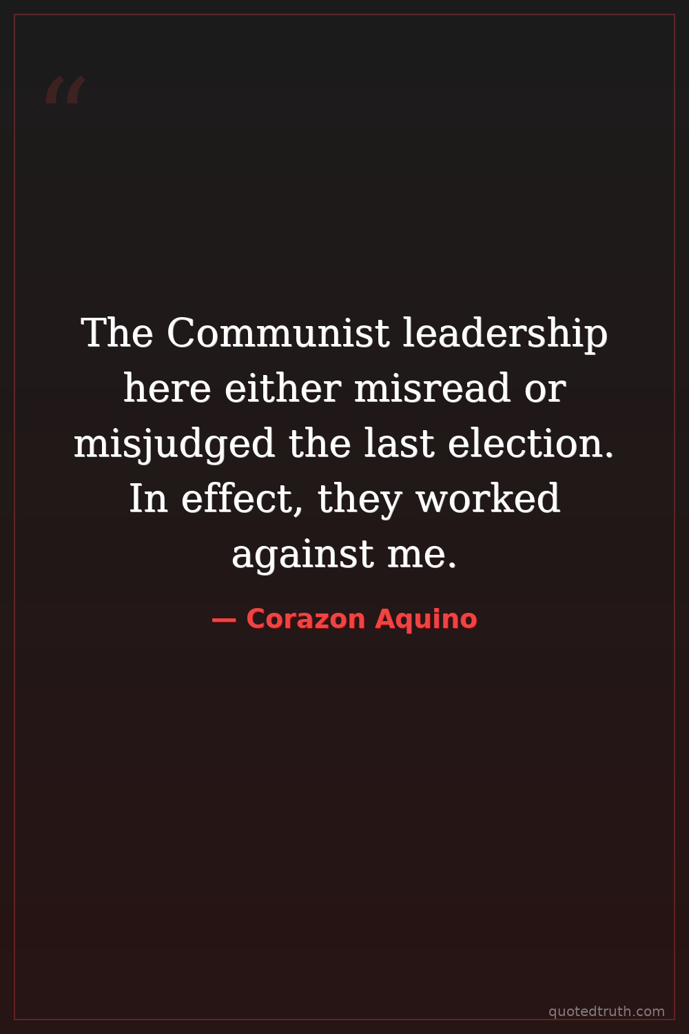 The Communist leadership here either misread or misjudged the last election. In effect, they worked against me.