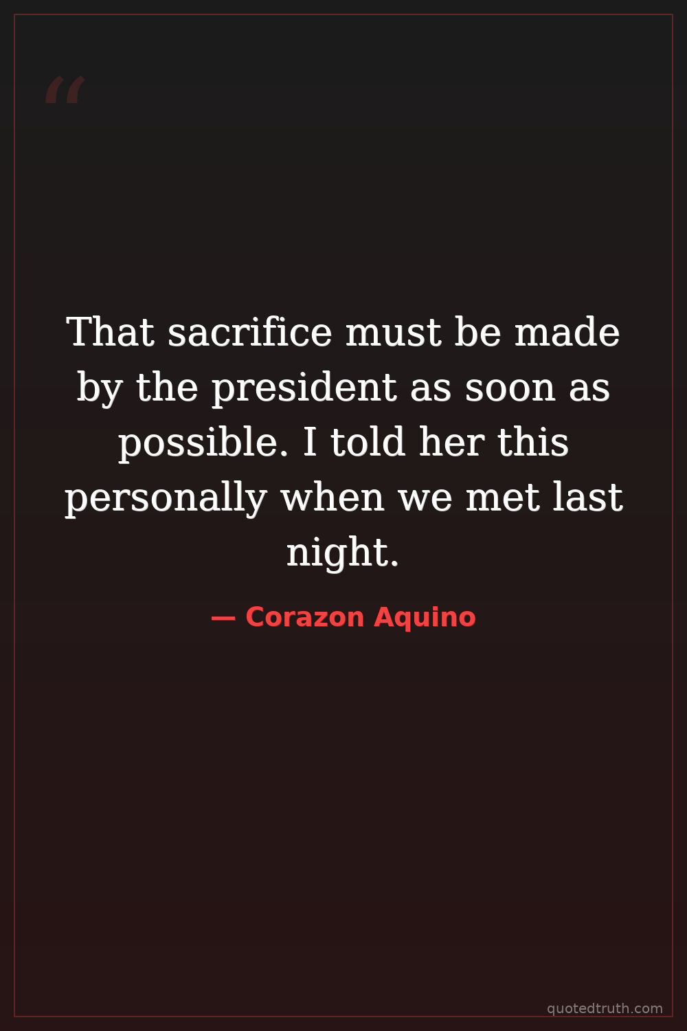 That sacrifice must be made by the president as soon as possible. I told her this personally when we met last night.