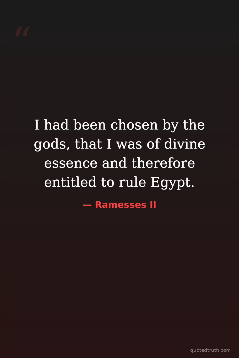 I had been chosen by the gods, that I was of divine essence and therefore entitled to rule Egypt.
