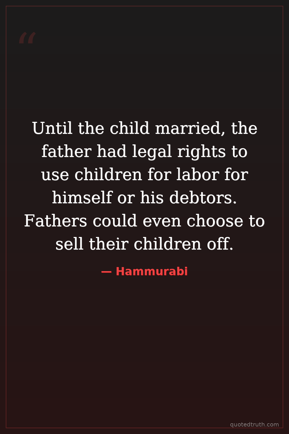 Until the child married, the father had legal rights to use children for labor for himself or his debtors. Fathers could even choose to sell their children off.