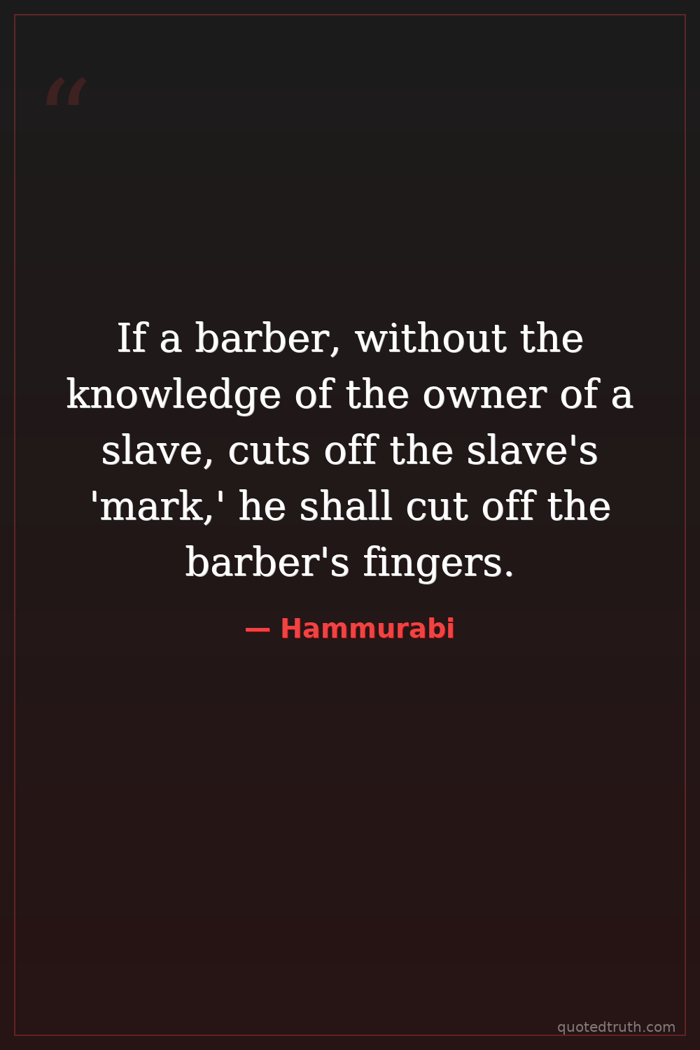 If a barber, without the knowledge of the owner of a slave, cuts off the slave's 'mark,' he shall cut off the barber's fingers.
