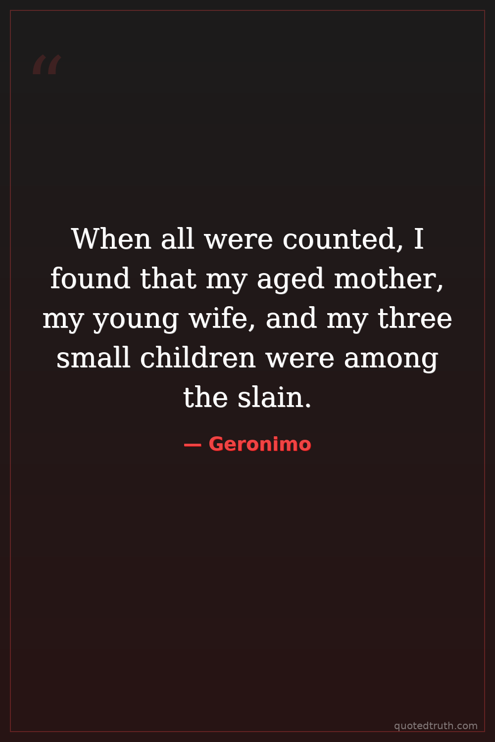 When all were counted, I found that my aged mother, my young wife, and my three small children were among the slain.
