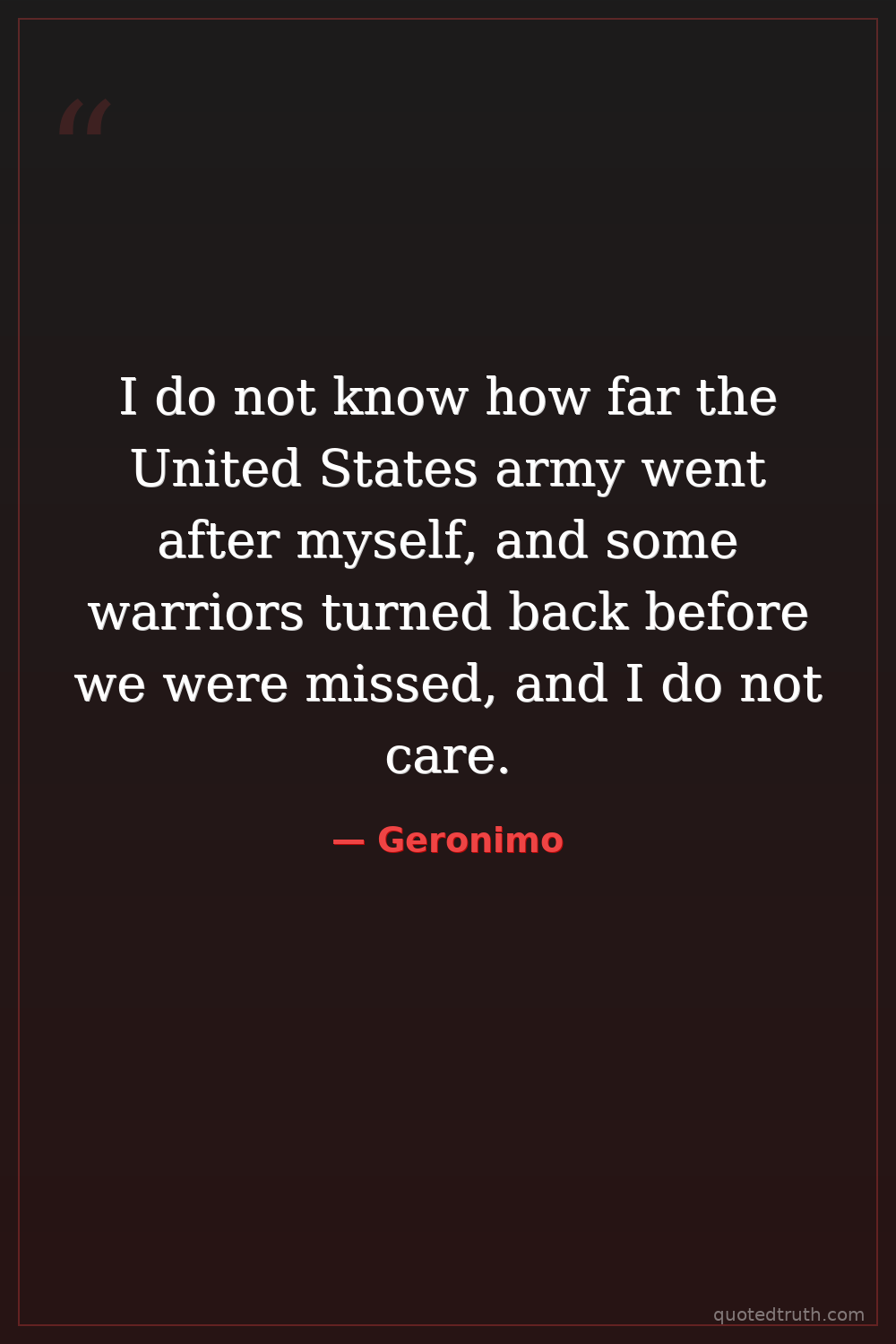 I do not know how far the United States army went after myself, and some warriors turned back before we were missed, and I do not care.
