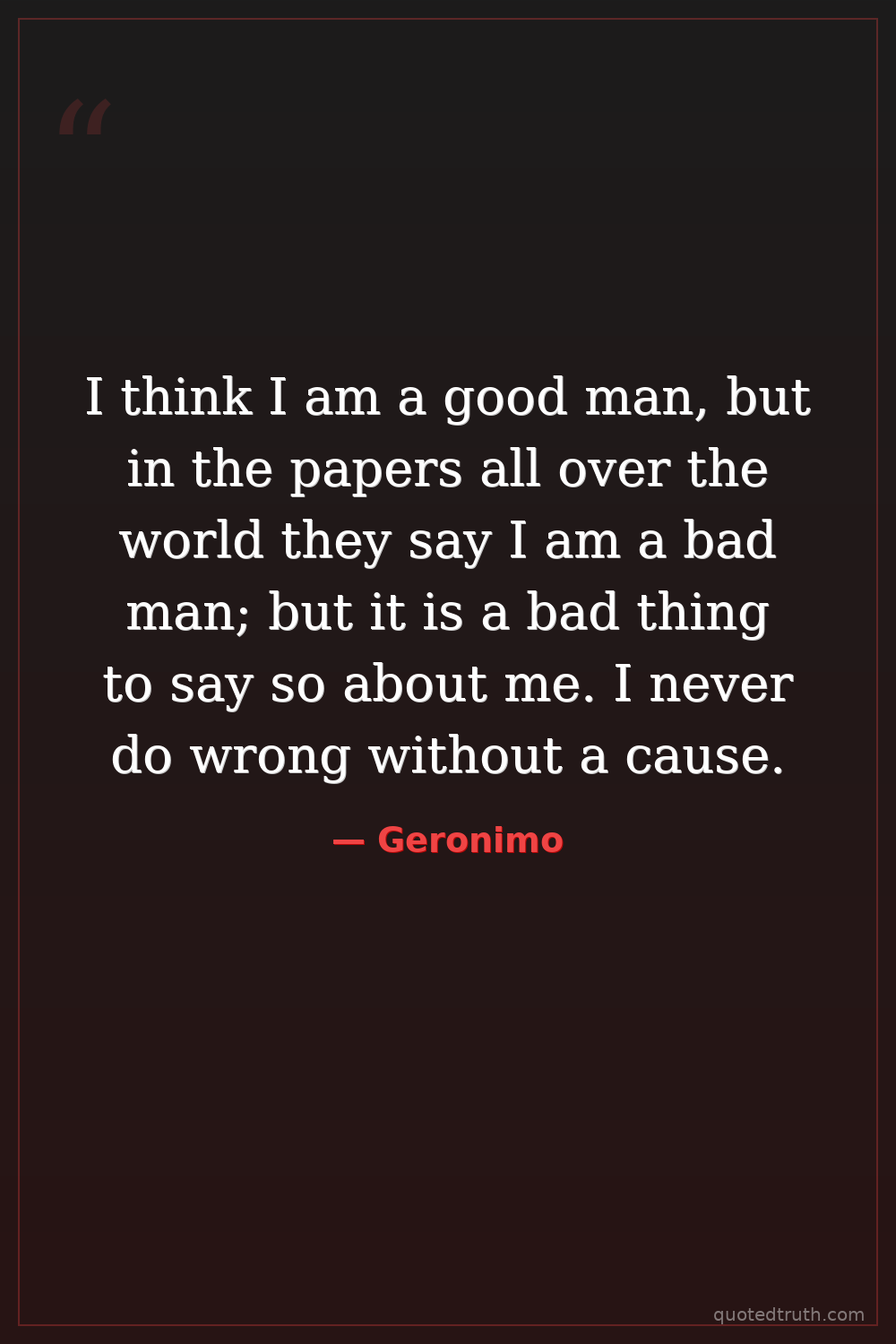 I think I am a good man, but in the papers all over the world they say I am a bad man; but it is a bad thing to say so about me. I never do wrong without a cause.