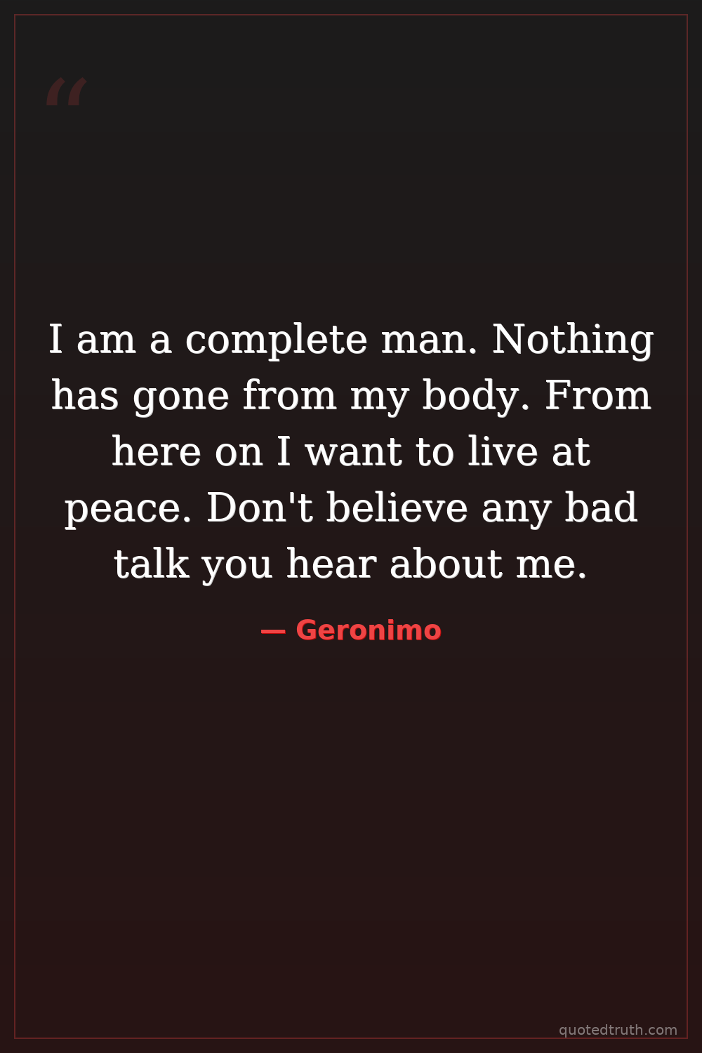 Shocking"I have killed many; I have scalped many. I have captured women and children. I have done all that is bad. But I did it to defend my people."