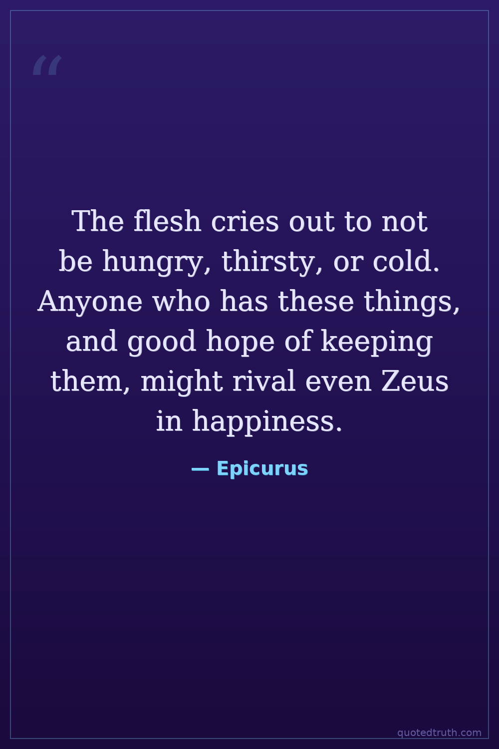 The flesh cries out to not be hungry, thirsty, or cold. Anyone who has these things, and good hope of keeping them, might rival even Zeus in happiness.
