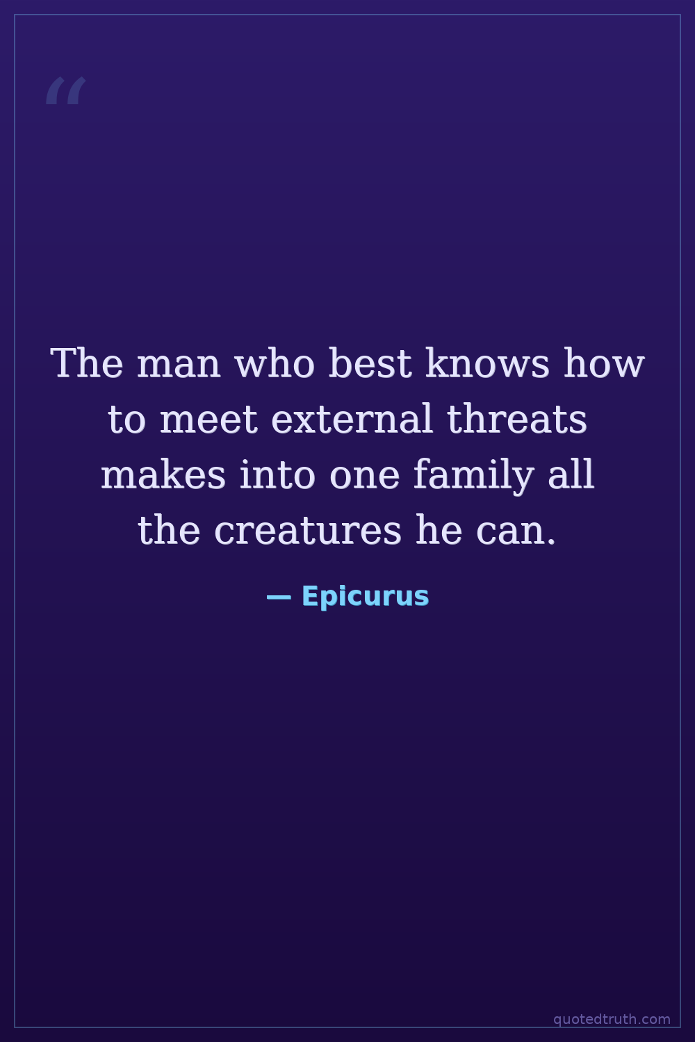 The man who best knows how to meet external threats makes into one family all the creatures he can.