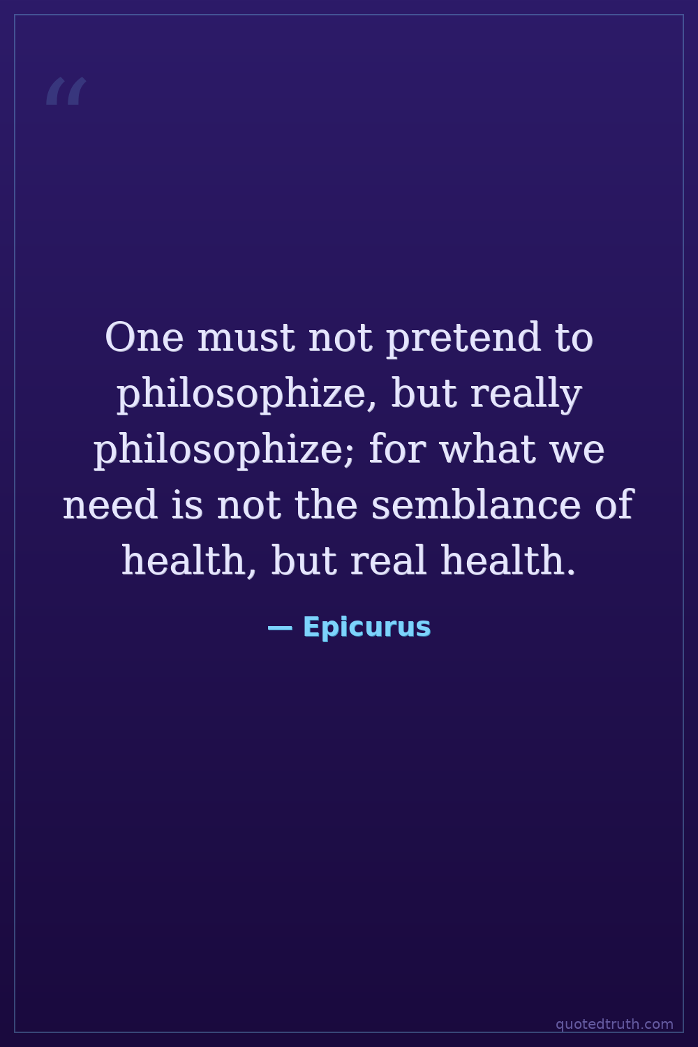 One must not pretend to philosophize, but really philosophize; for what we need is not the semblance of health, but real health.
