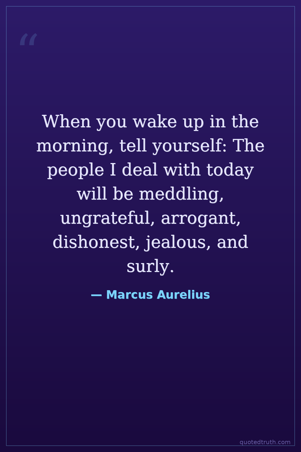 When you wake up in the morning, tell yourself: The people I deal with today will be meddling, ungrateful, arrogant, dishonest, jealous, and surly.