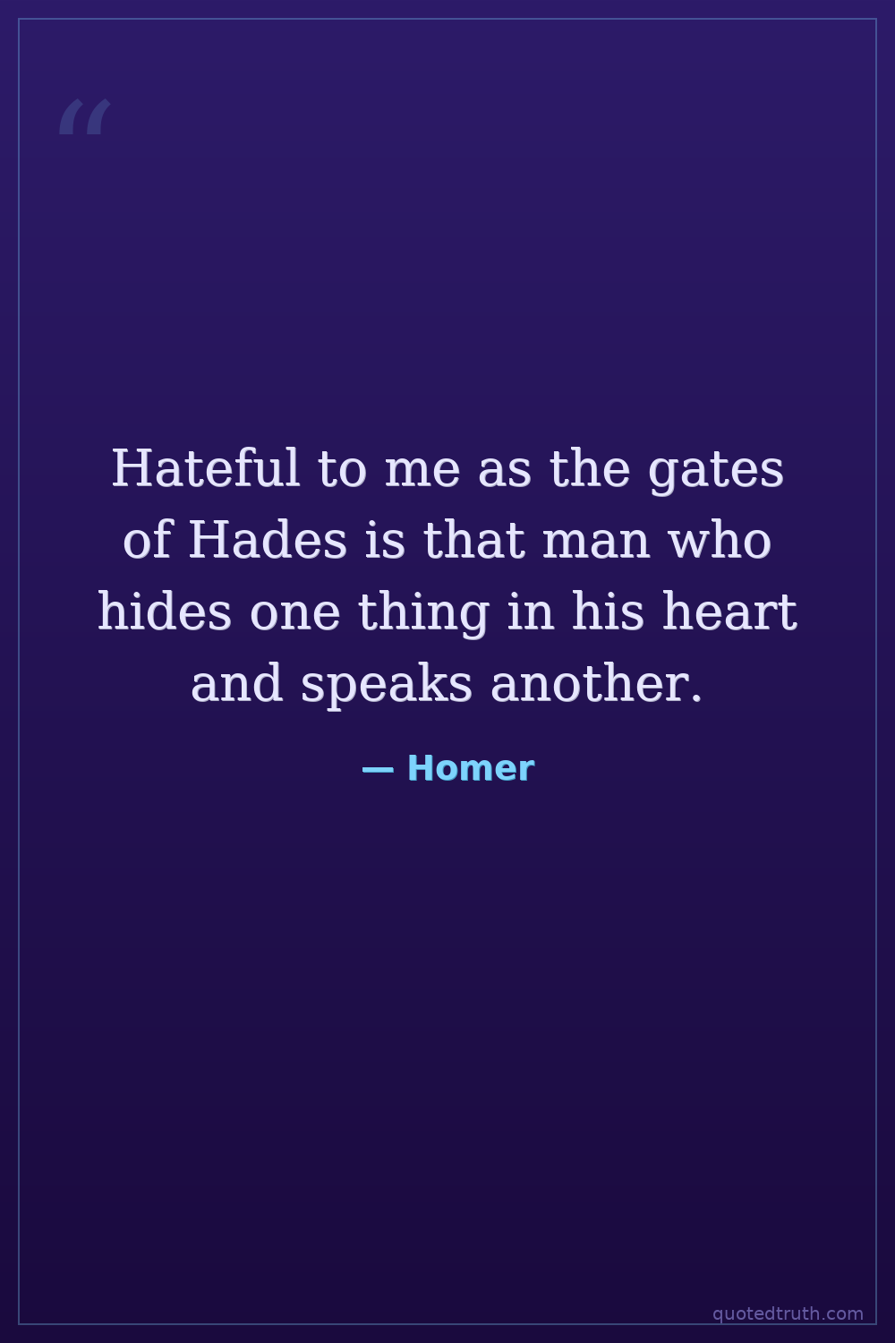 Hateful to me as the gates of Hades is that man who hides one thing in his heart and speaks another.