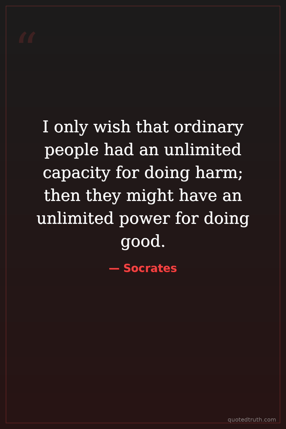 I only wish that ordinary people had an unlimited capacity for doing harm; then they might have an unlimited power for doing good.